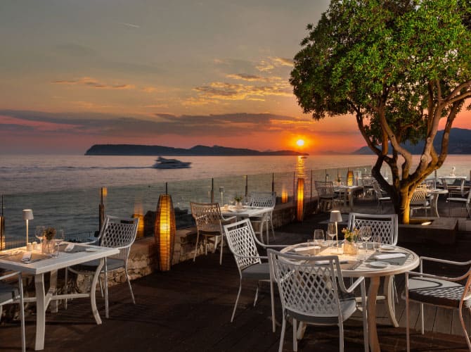 В ресторане Neptun Terrace с террасой у бассейна и террасой с видом на Адриатическое море сервируют «шведский стол». В ресторане Zoë предлагают блюда средиземноморской кухни по меню.