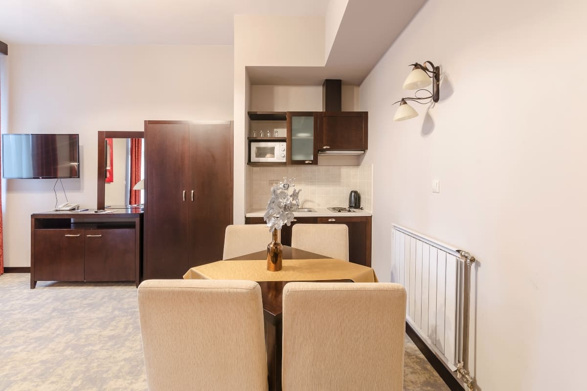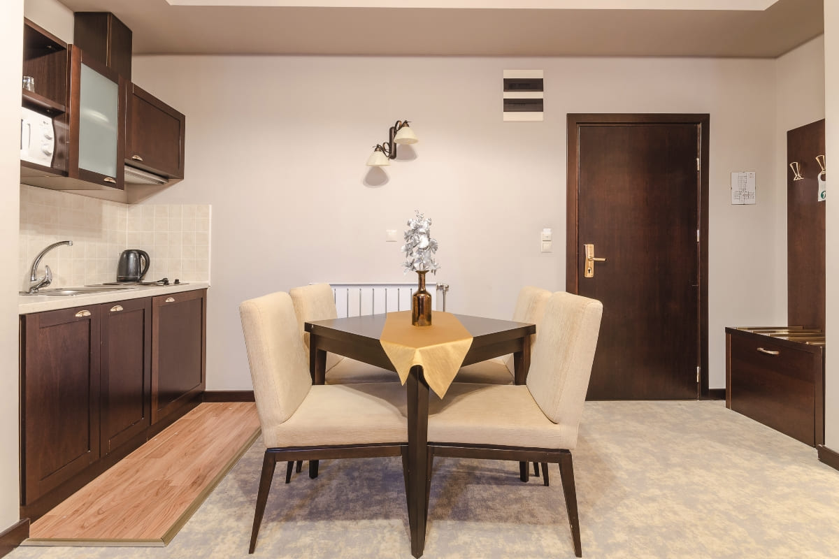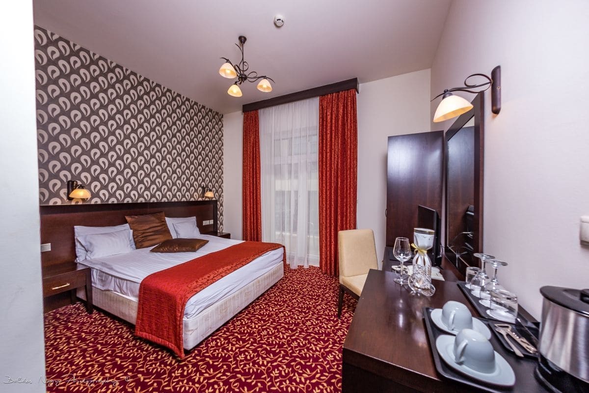 В отеле имеется 4 вида номеров: стандартный 2-х местный номер, 2-х местный супериор, семейные апартаменты «Deluxe» и апартаменты «Aurum»