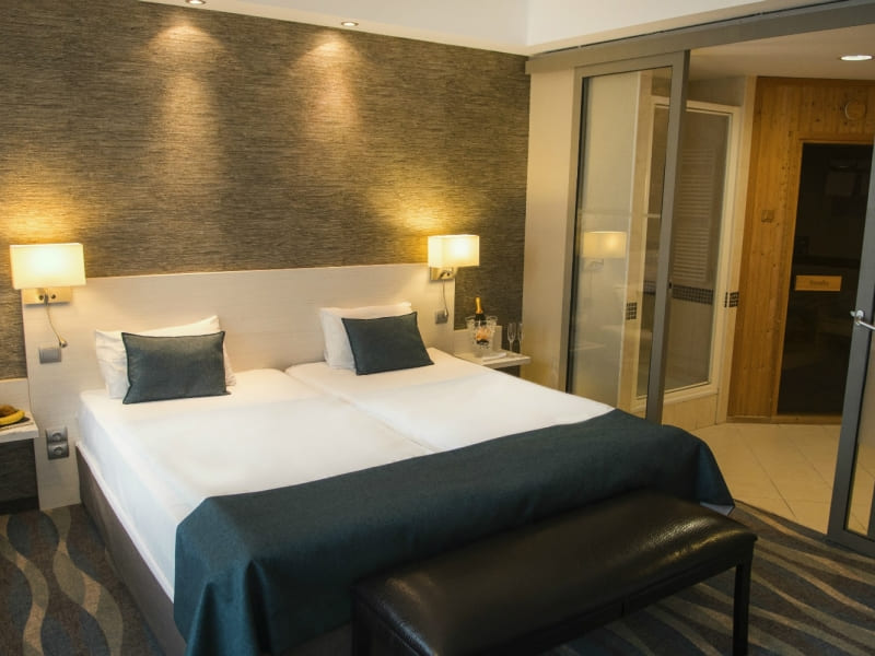 Hotel Azur Premium – центр развлечений и удовольствия! Здесь созданы все условия для полноценного отдыха. Стильные просторные номера оборудованы меблированными балконами – любуйтесь видами прекрасного Балатона и дышите свежими ароматами леса. Из Junior suite вы увидите и знаменитый полуостров Тихань, укрытый шалью вечнозелёных деревьев. Luxury suite предполагает наличие собственной сауны и джакузи в жилой зоне – всё для того, чтобы полностью расслабиться.