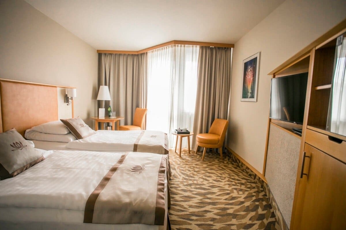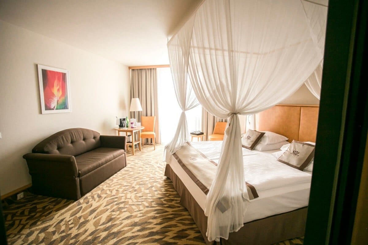 Panoramic room with terrace (26 кв. м): терраса (12 кв. м), спальня, ванная комната. Дополнительно: оборудование для приготовления чая. Расположены на верхних этажах. Некоторые номера имеют вид на парк или бассейн