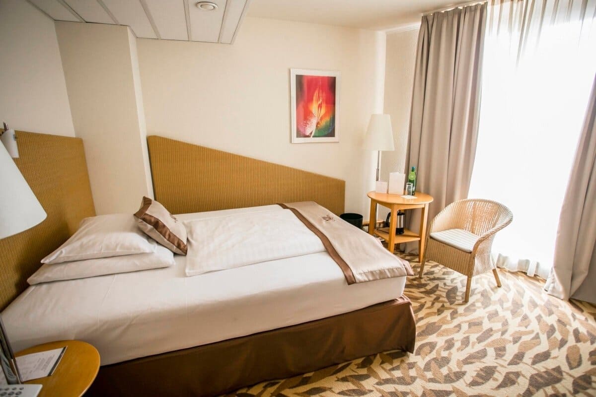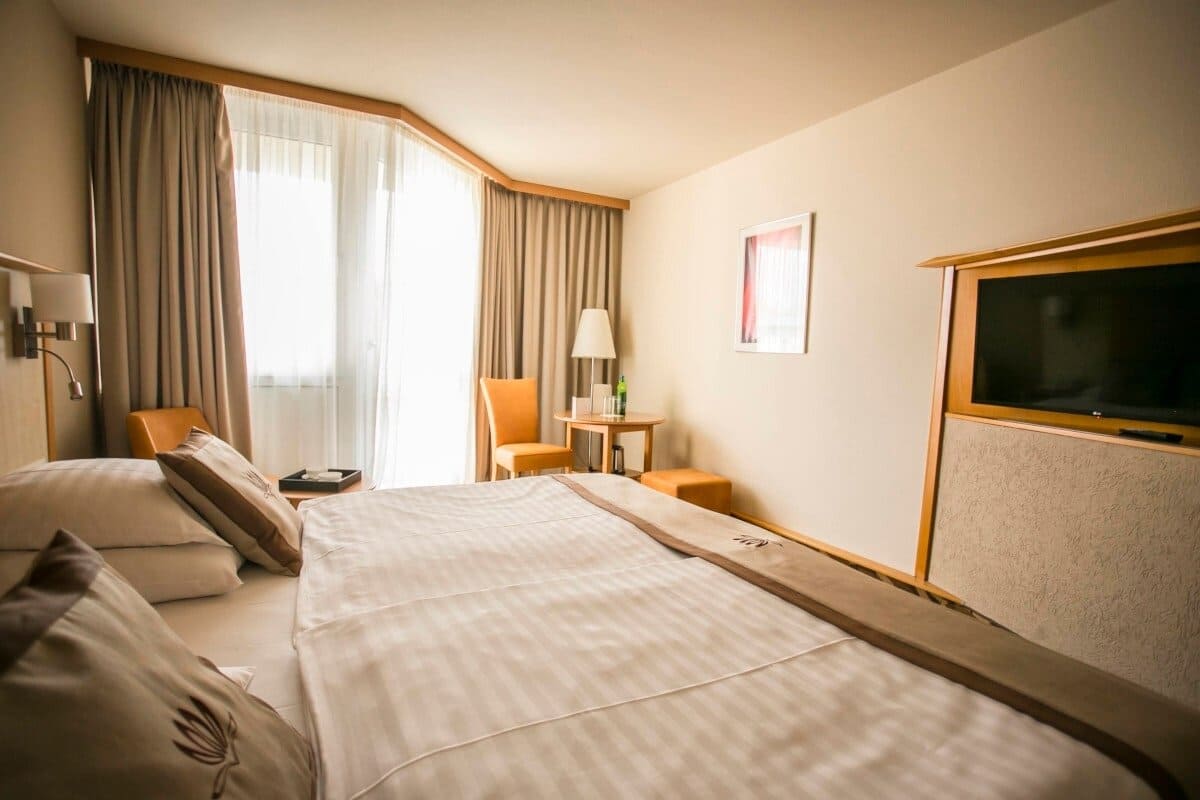 Standard room (20-26 кв. м): балкон (2.5 кв. м), спальня, ванная комната. Вид на парк.