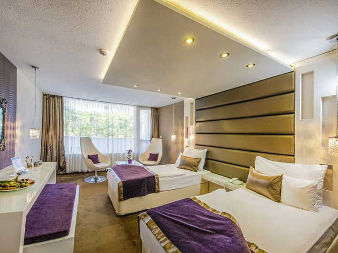 Residence Balaton Conference & Wellness Hotel – изысканный курорт на берегу озера Балатон. Отель отличает наличие собственного пляжа – в том числе над водой на сваях, оборудованного комфортными лежаками и баром. Здание оригинальной формы окружает живописный парк, где так приятно прогуляться после купания. Residence Balaton Conference & Wellness Hotel, помимо природных красот и блестящего размещения между центром Шиофока и озером, предлагает свои гостям прекрасный оздоровительный центр с гидромассажными бассейнами, джакузи и другими прелестями SPA. Насладитесь великолепными блюдами в ресторане и богатым выбором алкогольных и безалкогольных напитков в череде баров.
