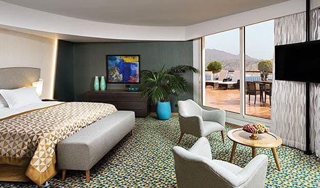 New Club Room (124 кв. м). Большая терраса, гостиная, спальня с двуспальной кроватью, ванная комната. Вид на бассейн и море. Гости данных номеров имеют особые привилегии.