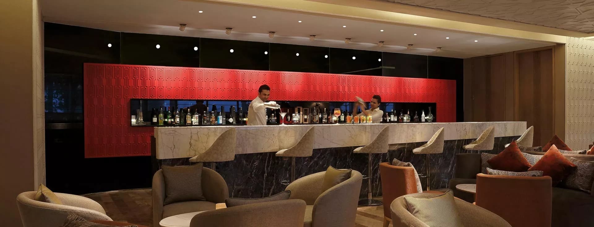 В ресторане Dilli 32 предлагаются блюда северо-индийской кухни. В ресторане Mei Kun подают блюда по меню, в том числе традиционные блюда кухни Юго-Восточной Азии. В кафе Knosh с видом на бассейн в течение всего дня можно заказать блюда китайской и западной кухни. В баре Cherry представлен выбор алкогольных и безалкогольных напитков.