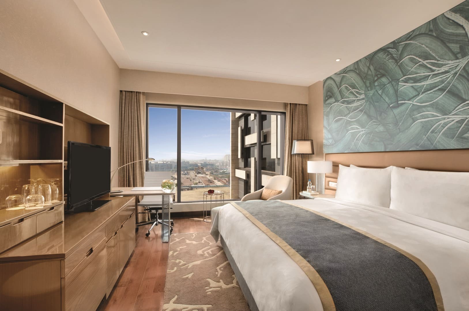 Номера отеля The Leela Ambience Convention оснащены телевизором с плоским экраном и кабельными каналами, мини-баром и электрическим чайником. Также в них имеется просторная ванная комната с ванной, душем, феном и бесплатными туалетно-косметическими принадлежностями.
