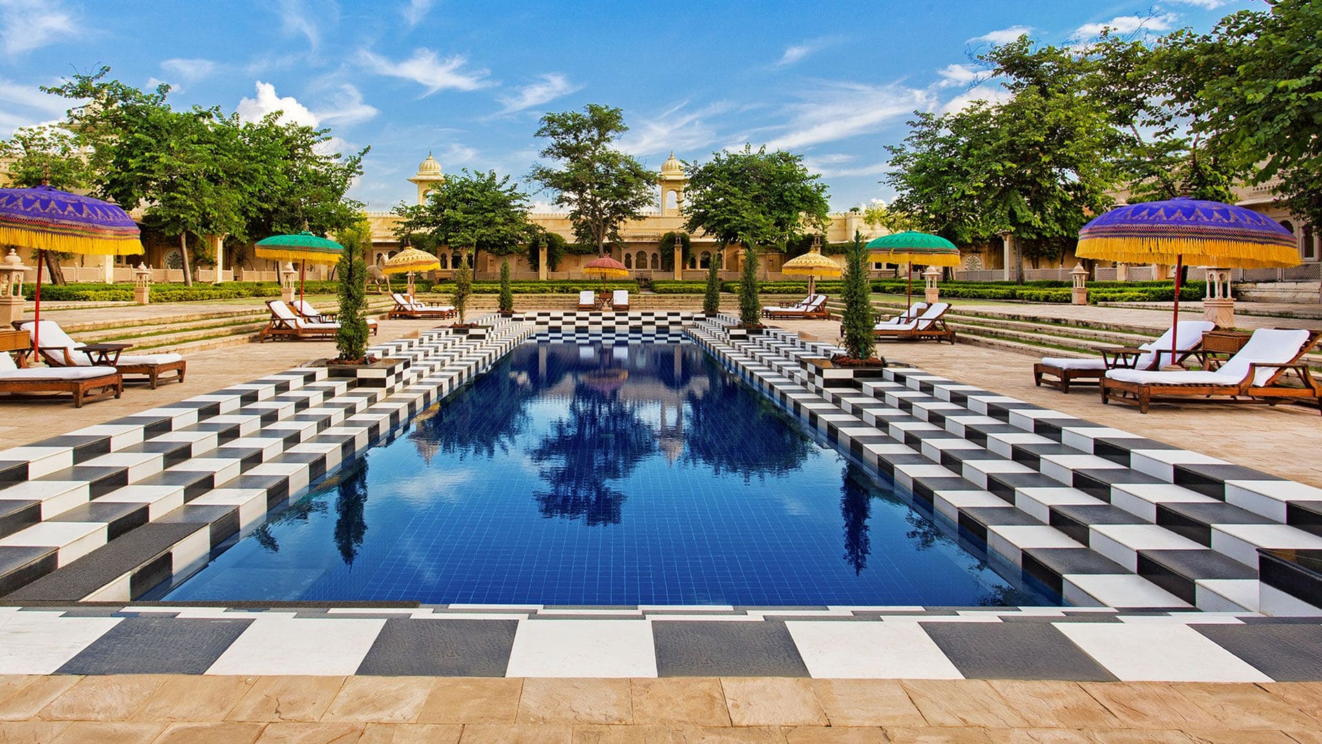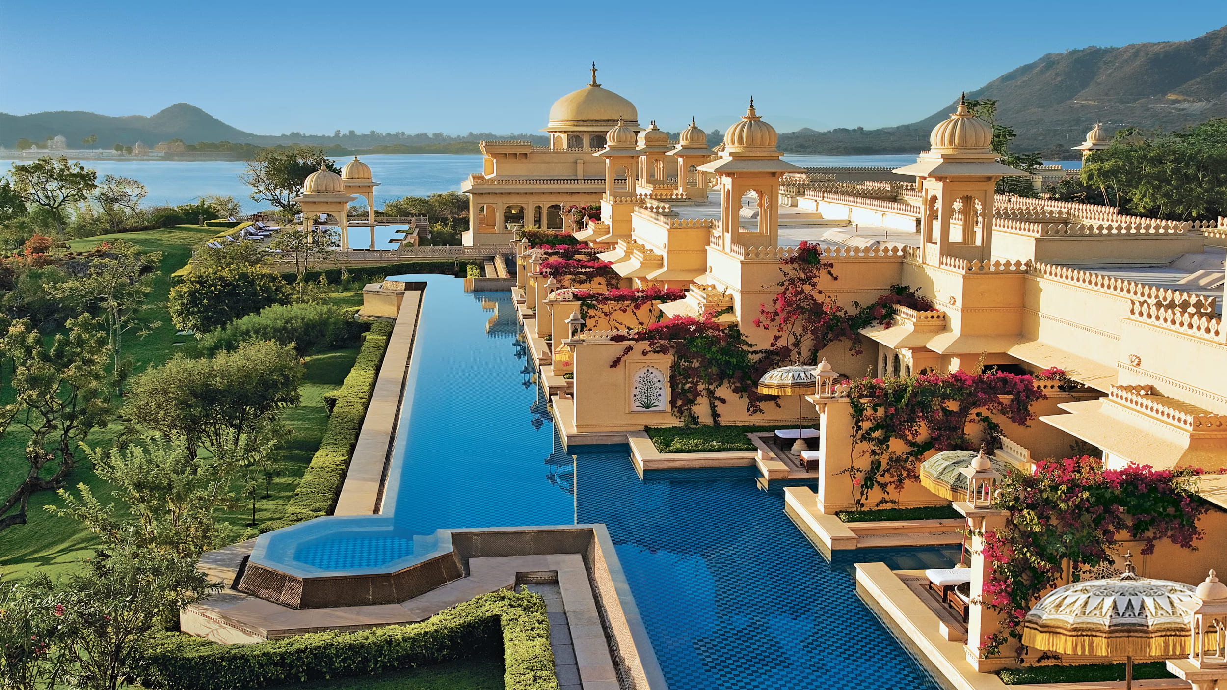 Kohinoor suite 2-bedroom: 20-метровый частный бассейн с видом на дворец и озеро, патио, гостиная с двумя каминами, 2 спальни.