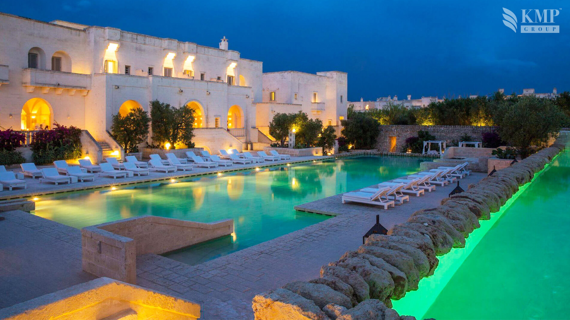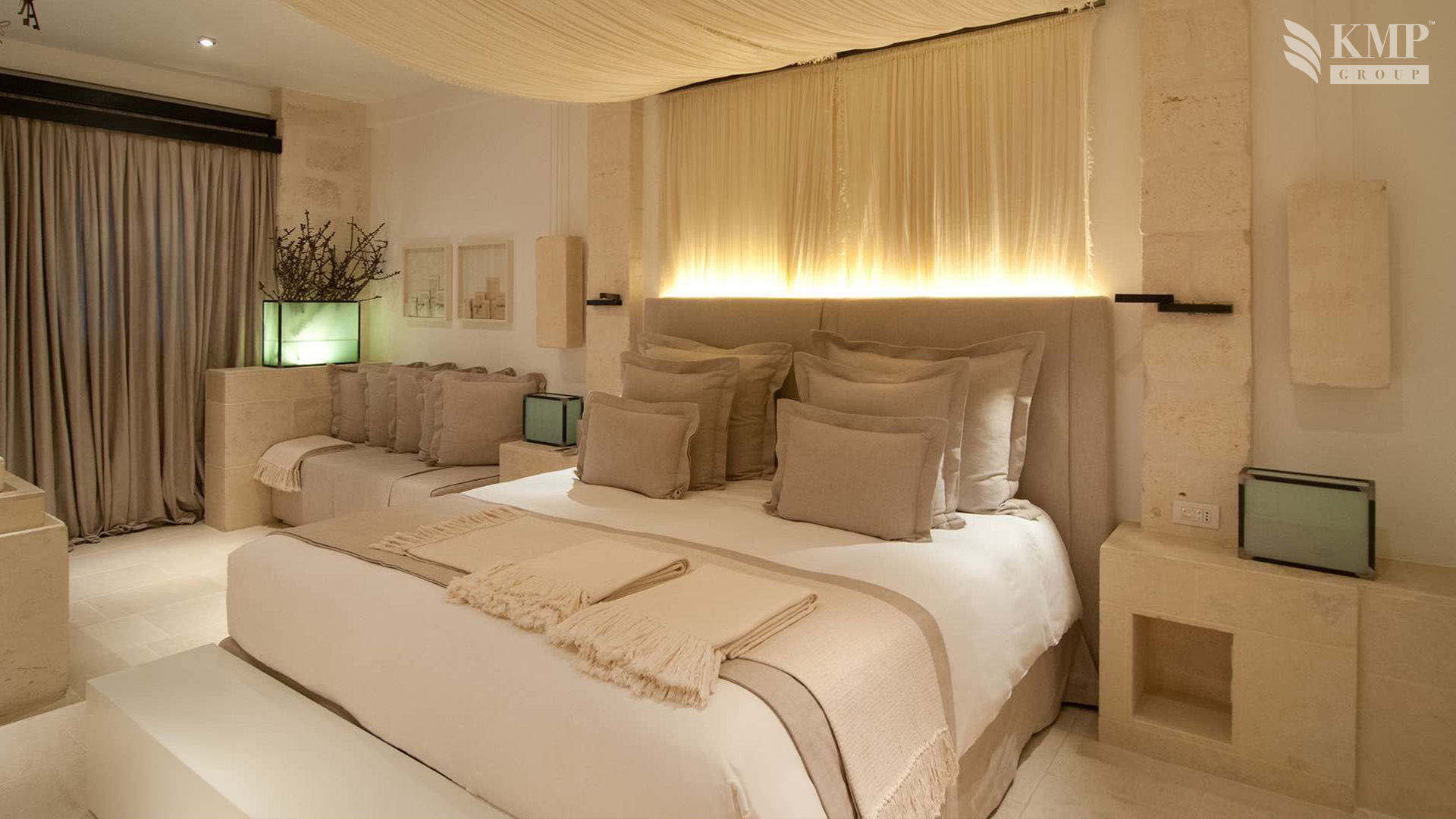 Villa Padronale (500 кв. м). Трехэтажная вилла с частным садом с персональным бассейном, патио, террасой, двумя гостиными, столовой, кухней, кабинетом, семью спальнями, четыремя ванными комнатами, двумя гардеробными, гостевым санузлом. Вид на море, холмы, долину Иттия и гольф-поле. Предоставляются услуги персонального камердинера.