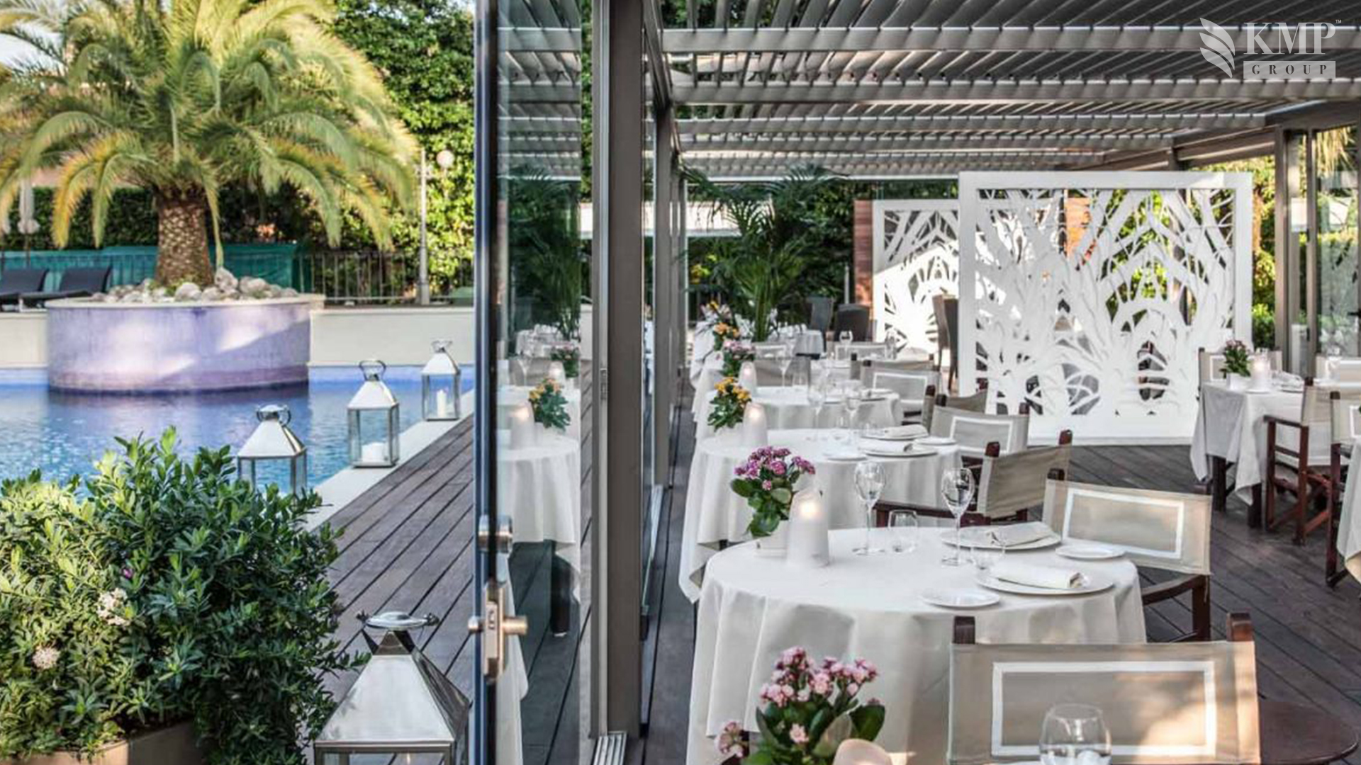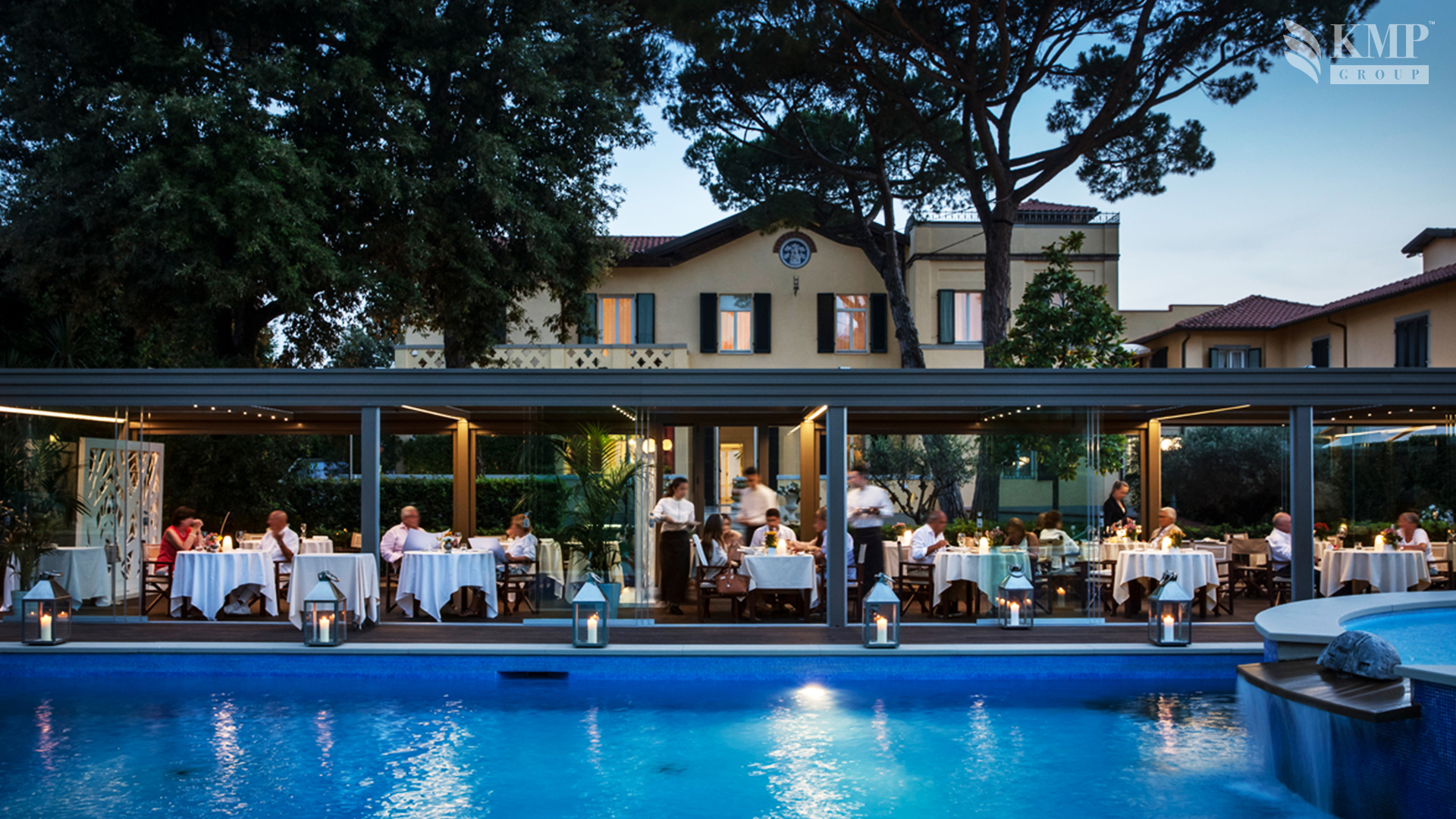 Double Classic (18-20 кв. м). Балкон (в некоторых номерах), спальня, ванная комната. Вид на Апуанские Альпы и Тирренское море.