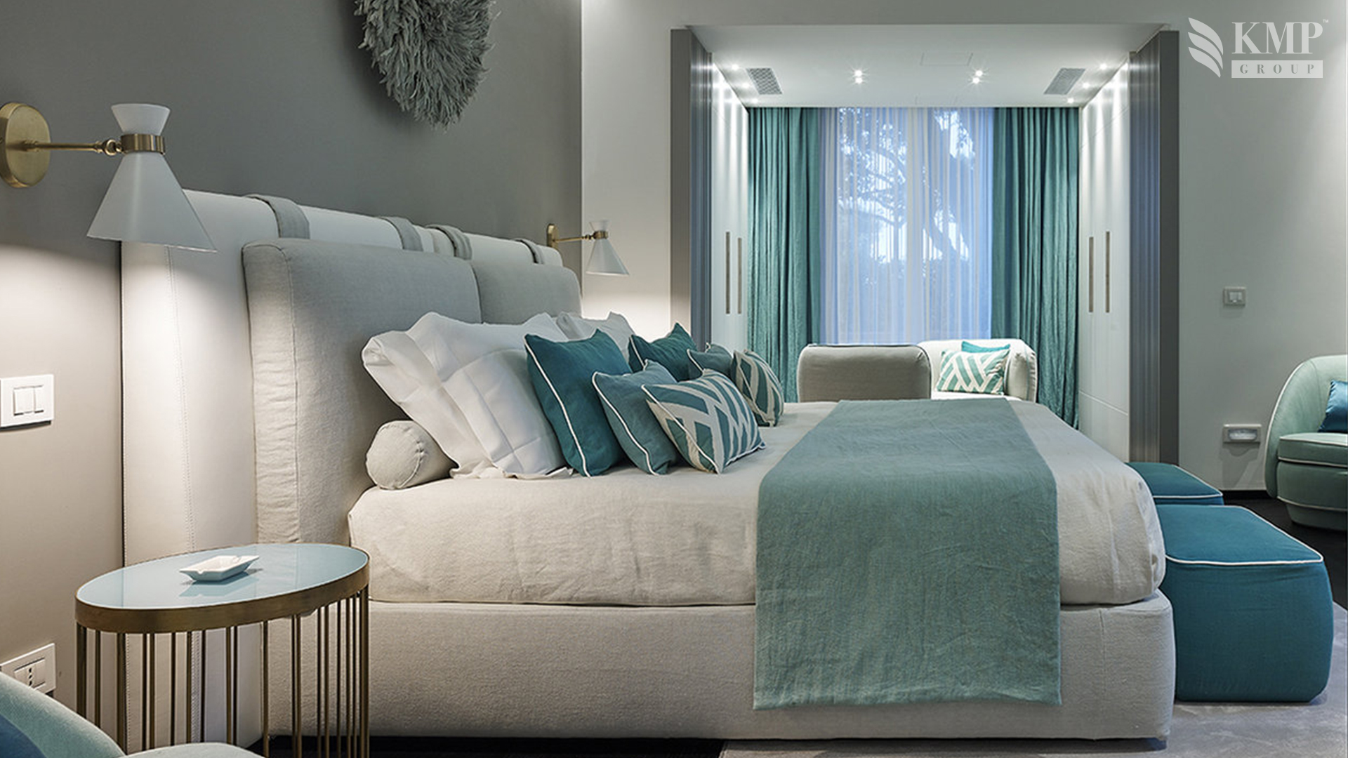 Superior Suite (30-35 кв. м). Гостиная зона, спальня, ванная комната. Вид на Тирренское море.