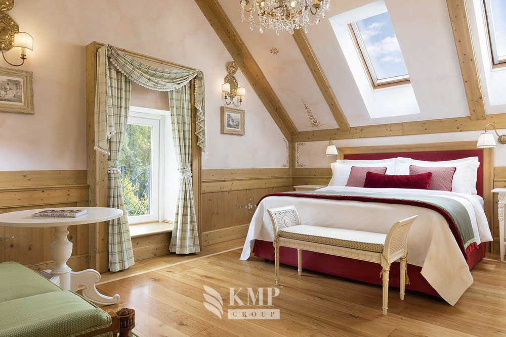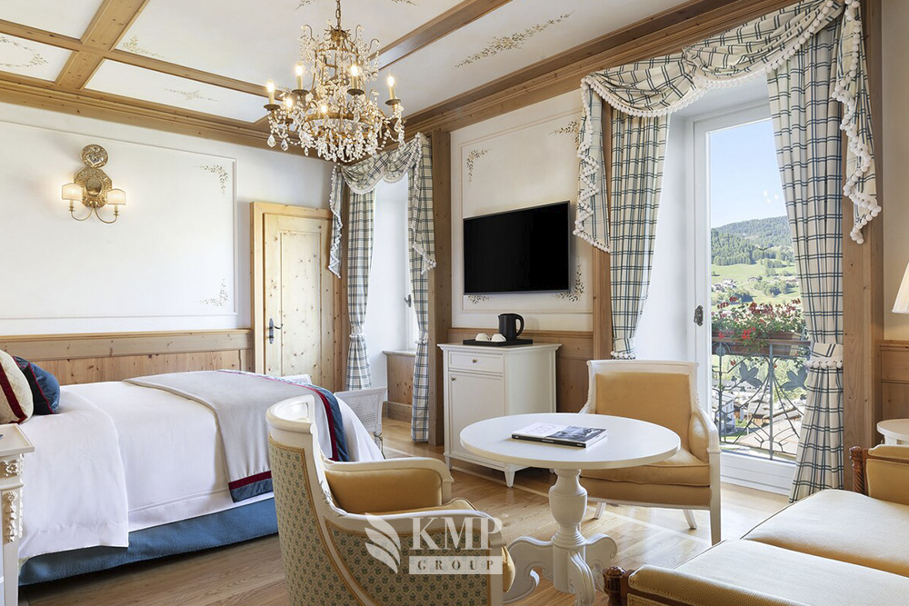 Panoramic superior room (30-37 кв. м). Балкон (в некоторых номерах), спальня с гостиной зоной (кровать king-size или две отдельные кровати), гардеробная (в некоторых номерах), ванная комната с джакузи и душем. Панорамный вид на долину. Возможно объединение с номерами категории Classic room.