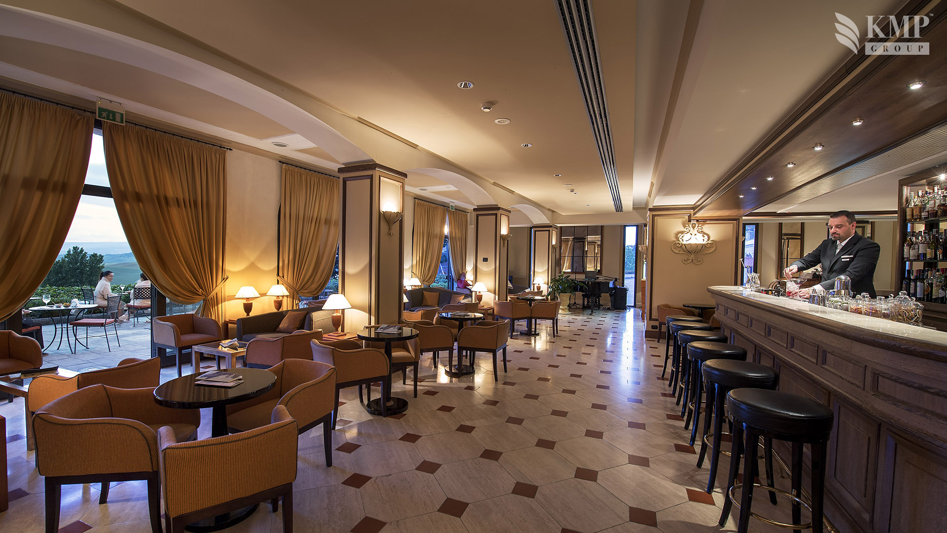 К услугам гостей 63 номера, 11 Junior suite и 4 Suite, каждый из которых оформлен в стиле эпохи возрождения и оснащен всеми современными удобствами. Ресторан тосканской и итальянской кухни - Ferdinando I, ресторан для завтраков - La Corte, бар Il Falconiere, снек-бар Bioaquam, парковка, Wi-fi. Рестораны и бары предлагают традиционные блюда тосканской кухни, а также диетическое меню, которое разрабатывается индивидуально по результатам анализов на совместимость продуктов питания. Отель знаменит, в том числе, своим термальным центром. К услугам гостей семь бассейнов с потрясающими видами, открытых или с панорамным остеклением, куда термальная вода, богатая фтором, магнием и серой, попадает непосредственно из источника. В СПА-центре используются термальные процедуры и восточные методики, а восстановить гармонию тела и разума помогут оздоровительные процедуры в рамках программы Equilibrium.