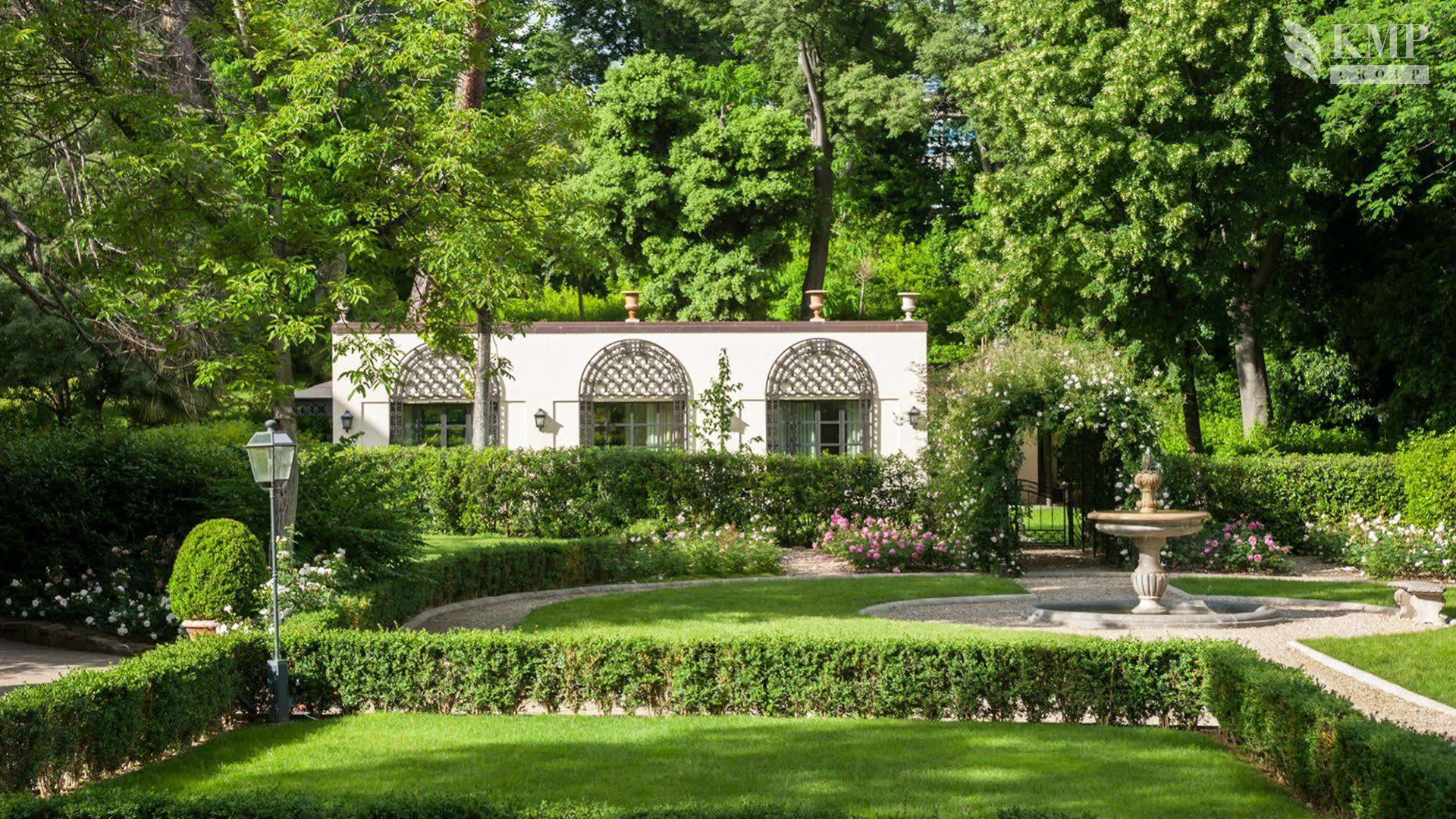 Presidential suite La Villa (121 кв. м). Терраса, гостиная, спальня с кроватью king-size, две ванные комнаты. Вид на парк.