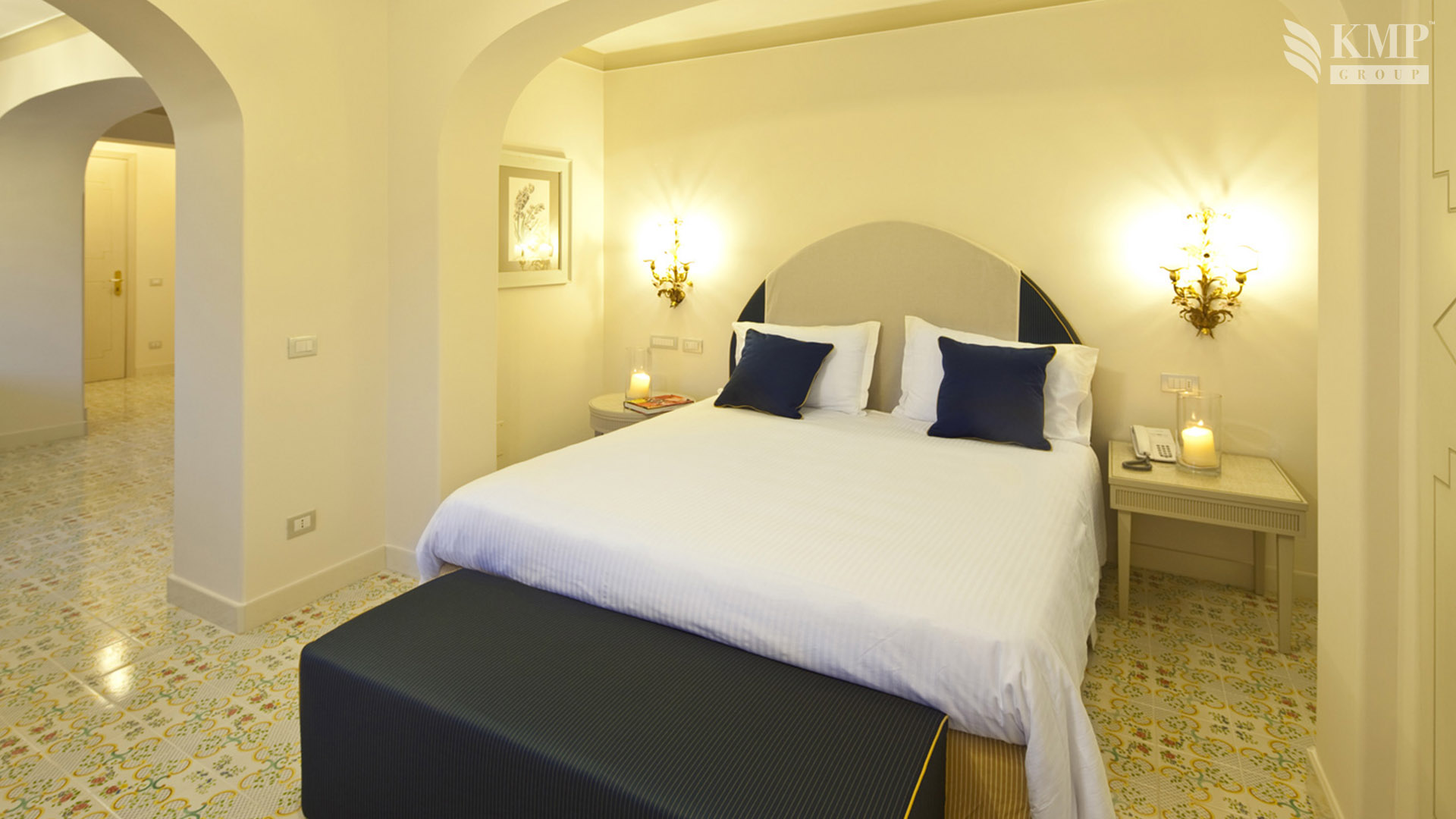 De Luxe (26 - 34 кв. м). Балкон или терраса, спальня, ванная комната. Вид на море и Неаполитанский залив.