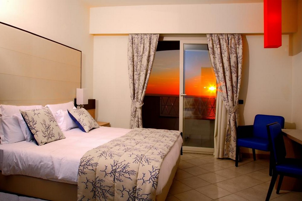 Deluxe Eolie: вид на Липарские острова. Для клиентов этой категории: изысканный банный набор, удобные тапочки, косметическое зеркало, вечерняя уборка, приветственный коктейль в день заезда.