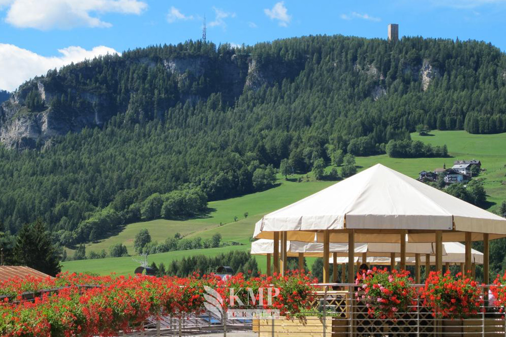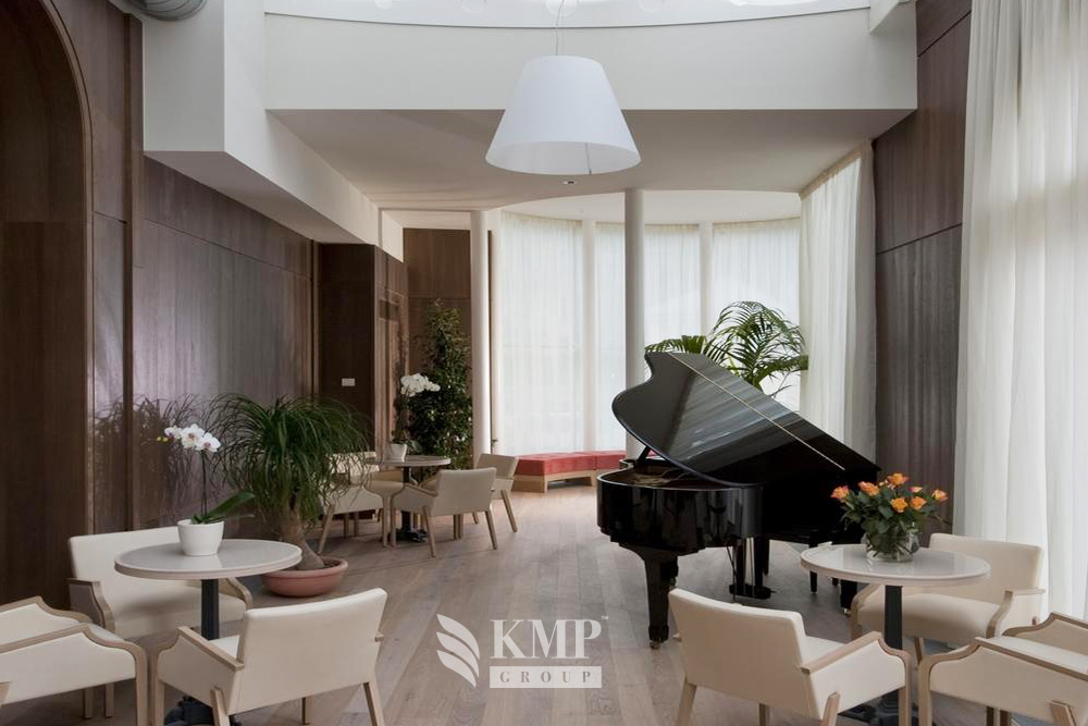 Savoia suite (81 кв. м). Терраса (27 кв. м), 2 спальни, 2 ванные комнаты. Расположен на десятом этаже. Вид на горы и город.