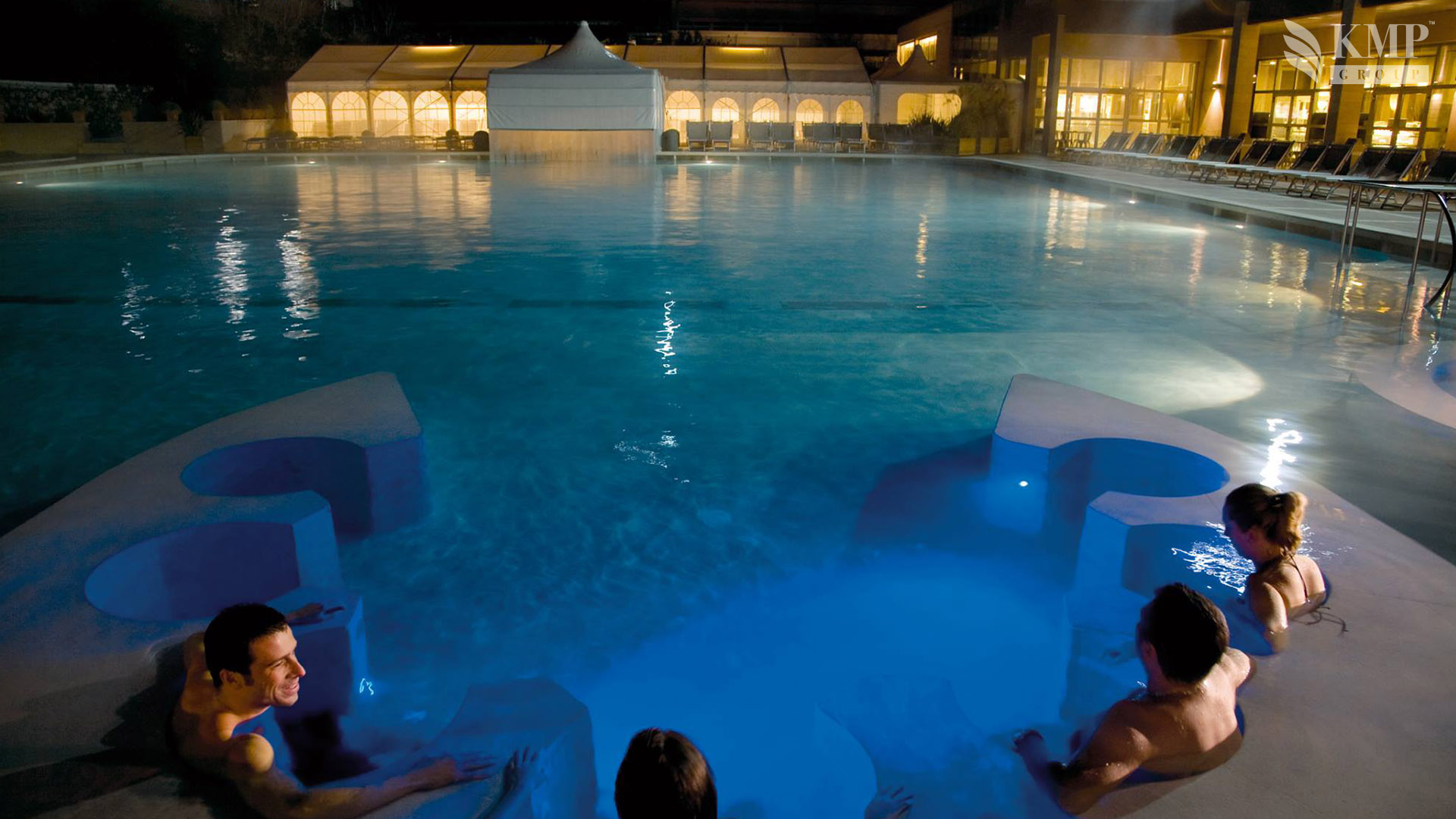 Superior room (20-22 кв. м). Спальня с кроватью king-size, ванная комната с ванной (термальная вода). Вид на холмы.