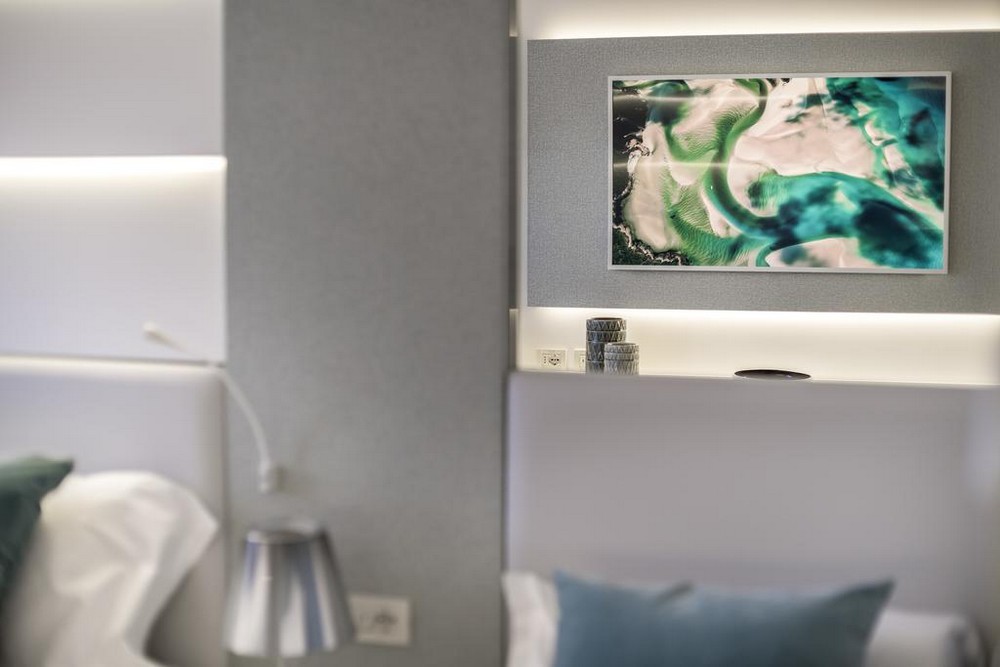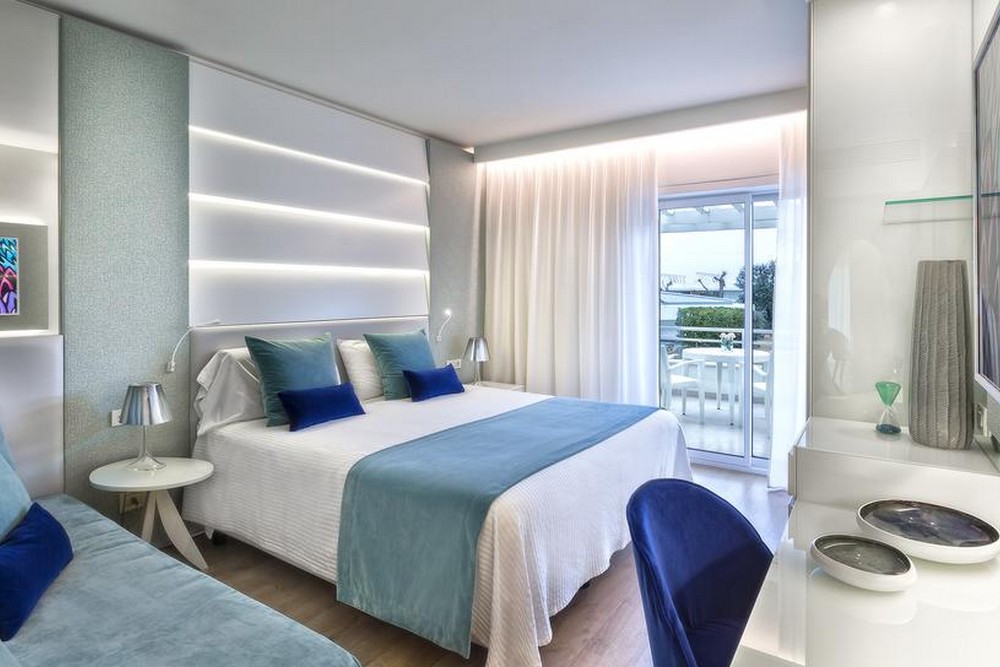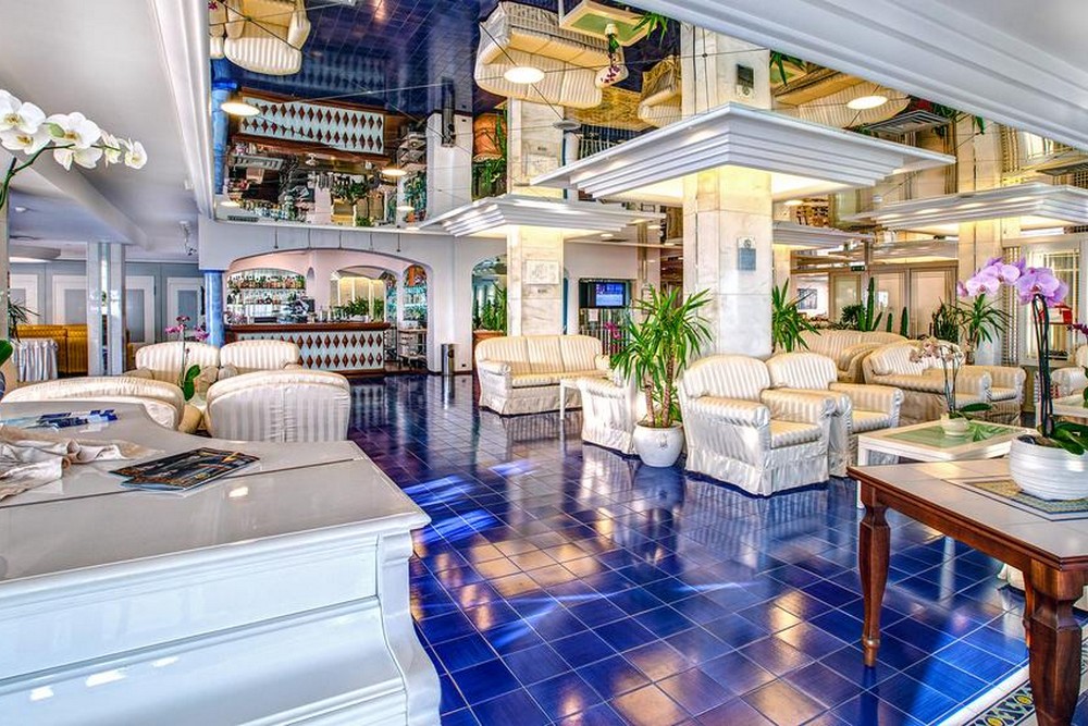 Улучшенный трехместный номер с видом на море: Площадь номера: 21 м². Собственная ванная комната. Выбор кроватей: 1 односпальная кровать, 1 большая двуспальная кровать Или 3 односпальные кровати. Полы выложены бело-голубой плиткой от Vietri. Имеется душ с гидромассажем. В распоряжении гостей бесплатный Wi-Fi, кондиционер, а также телевизор с плоским экраном и спутниковыми каналами. В ванной комнате предоставляются туалетно-косметические принадлежности, тапочки и халаты.