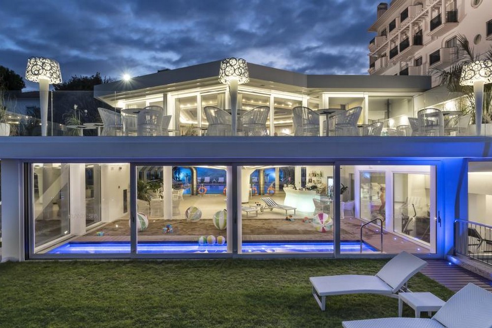 Полулюкс: Площадь номера: 35 м². Собственная ванная комната. Кровать: 1 очень большая двуспальная кровать. Большой люкс с гостиной зоной располагает телевизором с плоским экраном и балконом с частичным видом на море. В ванной комнате установлена гидромассажная ванна.