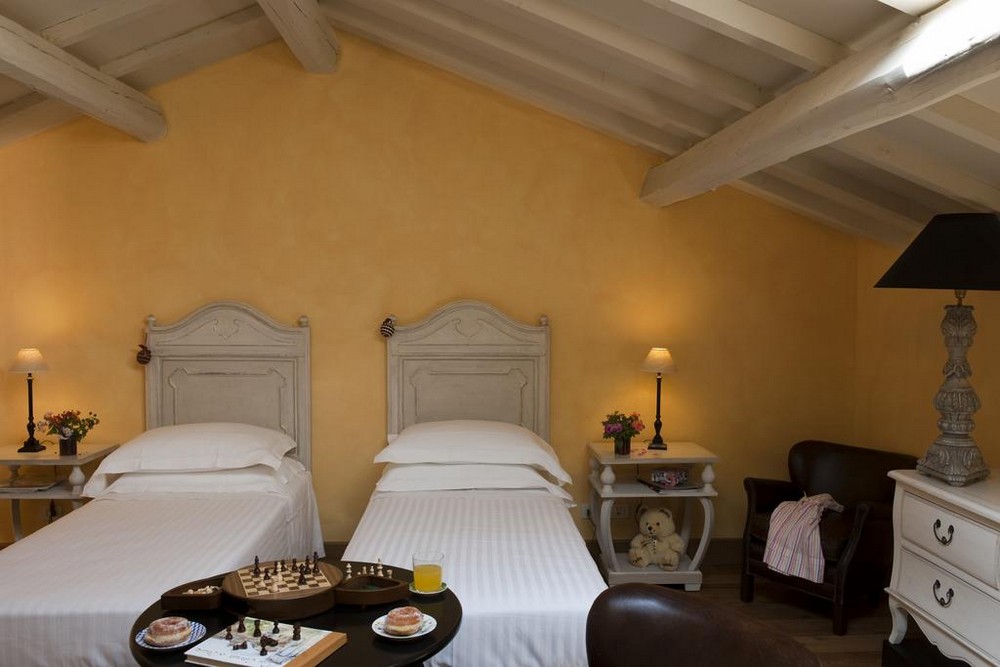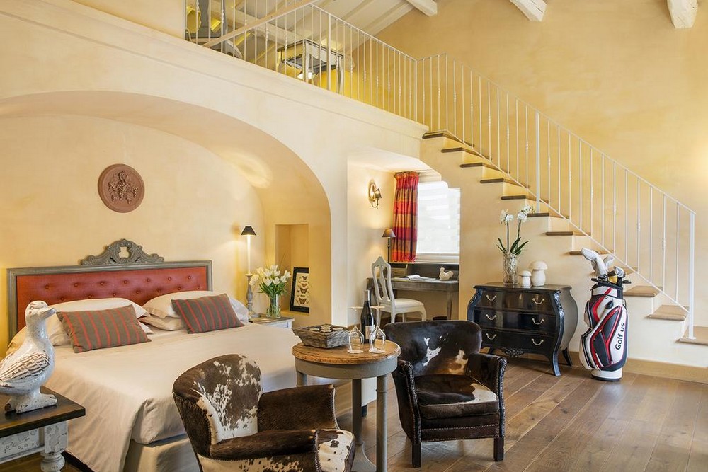 Superior suites (2) – 65 - 70 м². Окна выходят на прекрасный пейзаж и небольшую часовню. В сьютах имеется просторная спальня-гостиная с каменным камином и зоной отдыха. Спальня элегантно обставлена в истинно итальянском стиле.