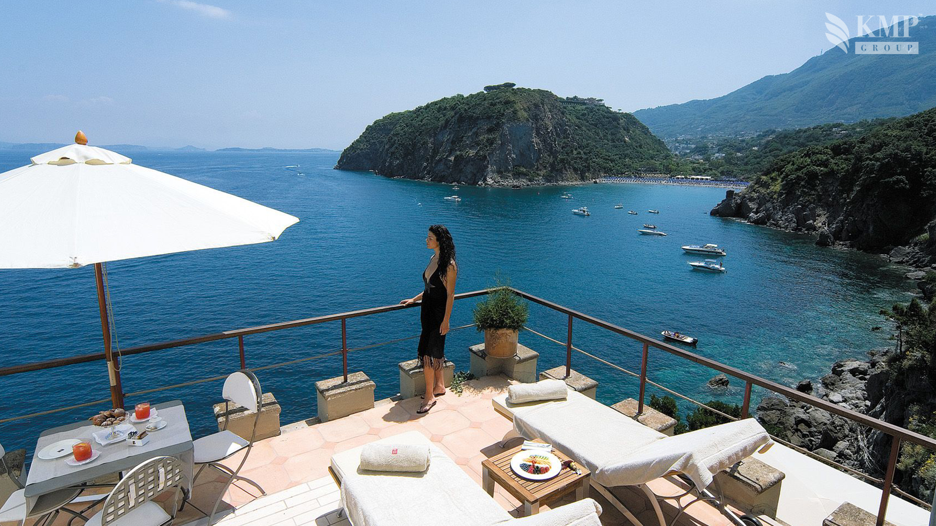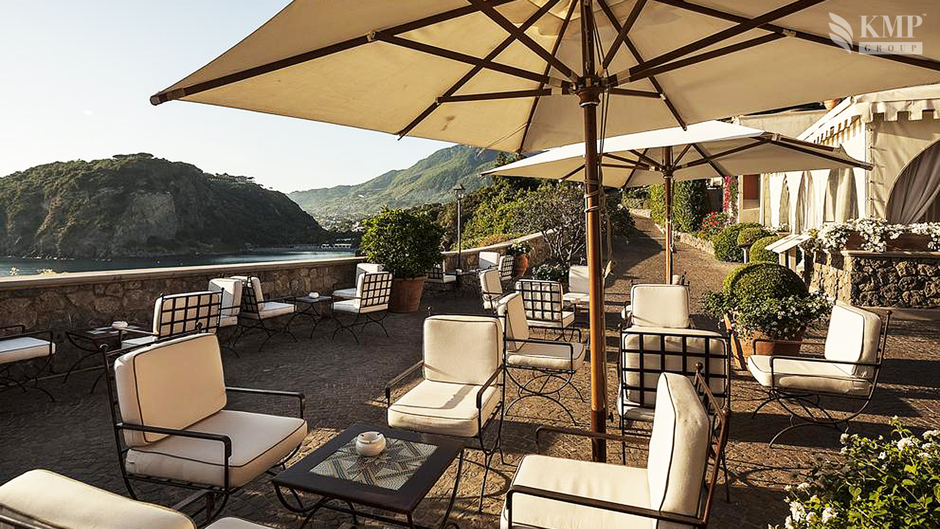 Deluxe Bellevue suite (47 кв. м). Терраса, гостиная, спальня, ванная комната. Расположены в башне. Вид на море.