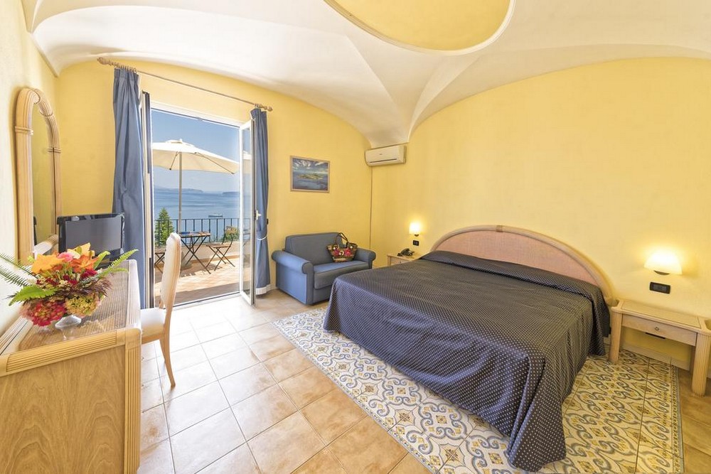 Junior Suite (35-40 м2, макс. 4 чел., имеют спальную и гостиную зону, вид во двор отеля или на море).