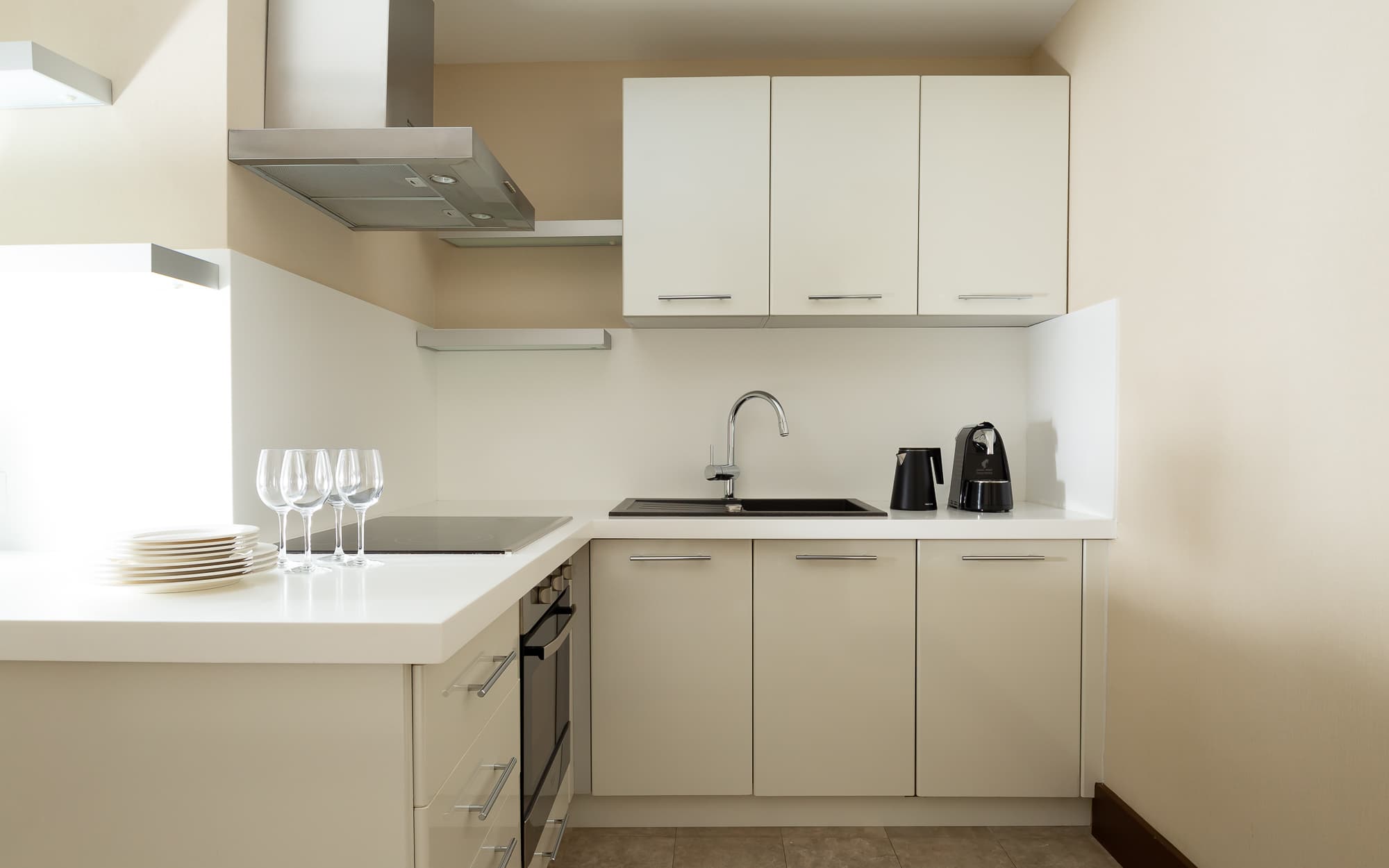 Люкс (65 кв.м) – 24 номера — это хорошо продуманное пространство и вид на Черное Море, современная ванная комната (банные принадлежности от Anna Semonin), одна двухместная кровать, полностью оборудованная кухня, спутниковое ТВ, система кондиционирования, сейф, фен, терраса, бесплатный беспроводной Интернет, мини-бар, кофемашина Nespresso, обслуживание в номере 24 часа. Максимальное количество гостей – 4 человека.