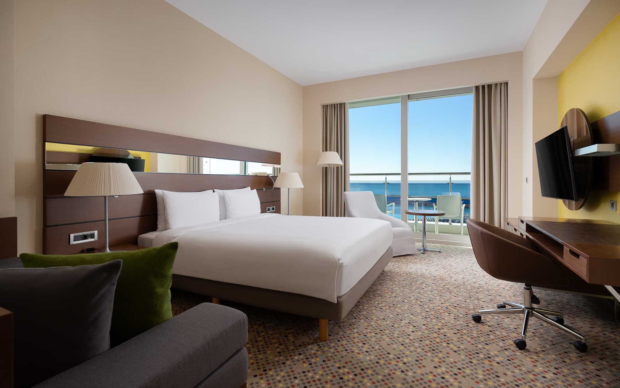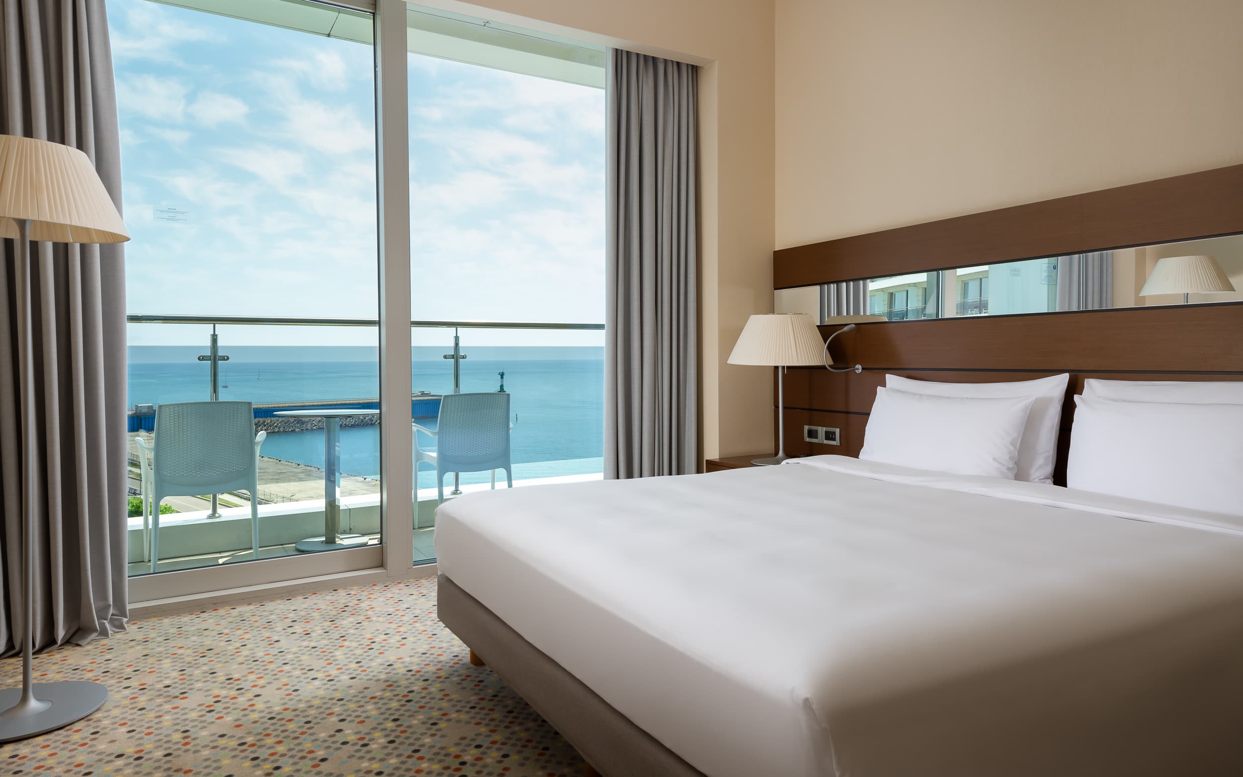Супериор (32 кв.м) – 188 номеров — современная ванная комната (банные принадлежности от Anna Semonin), одна двухместная или две раздельных кровати, спутниковое ТВ, система кондиционирования, сейф, фен, балкон с видом на море, бесплатный беспроводной Интернет, мини-бар, обслуживание в номере 24 часа. Максимальное количество гостей – 3 человека.