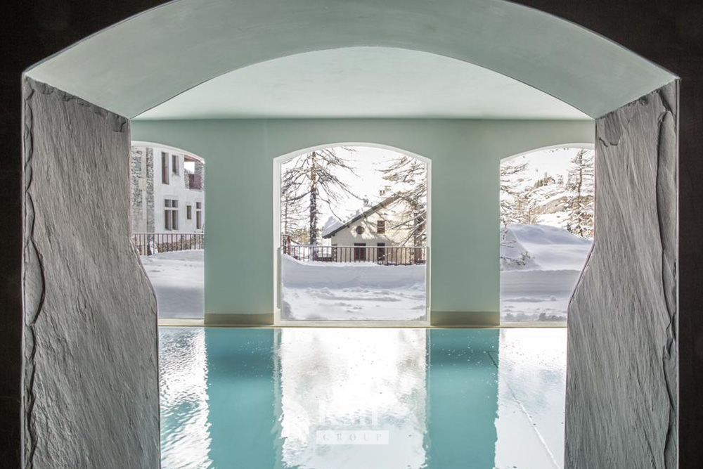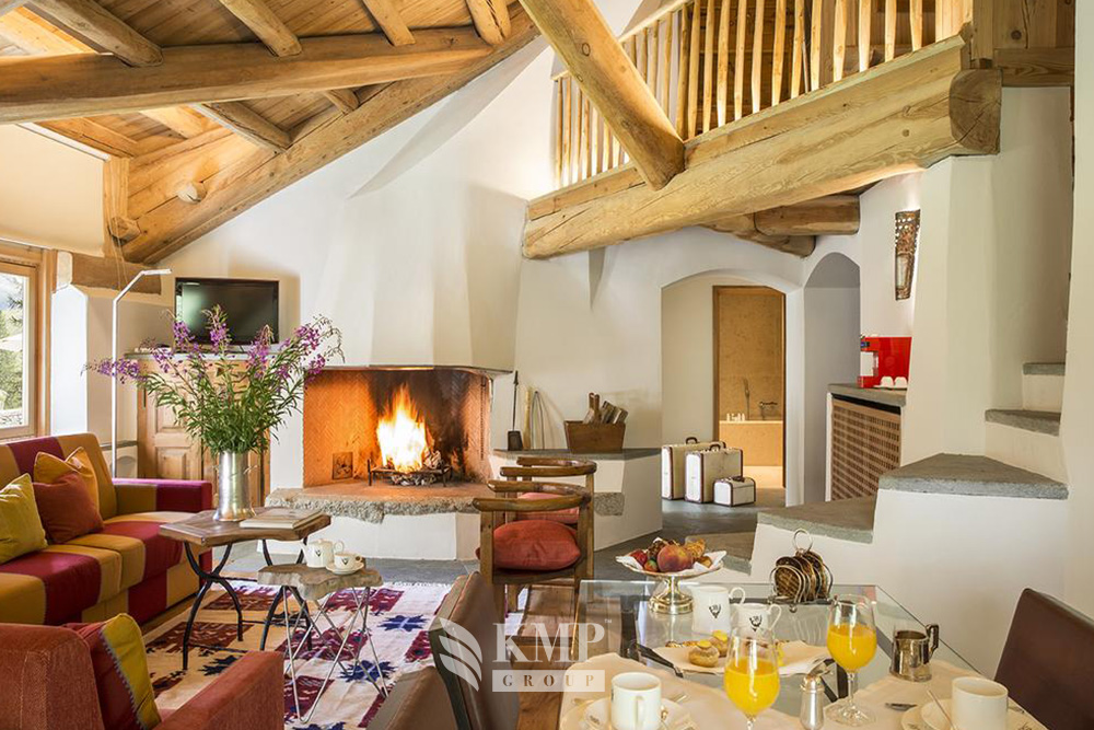 Apartment Deluxe Plus (около 90-100 кв. м). Апартаменты на втором этаже, имеют выход на террасу из каждой комнаты. Гостиная с фирменным камином, столом на 8 персон и раскладным диваном. Одна спальня с камином и большой ванной комнатой, отделанной мрамором, другая роскошная спальня с мраморной ванной комнатой имеет доступ к террасе с видом на Маттерхорн. Максимальное размещение 6 человек.