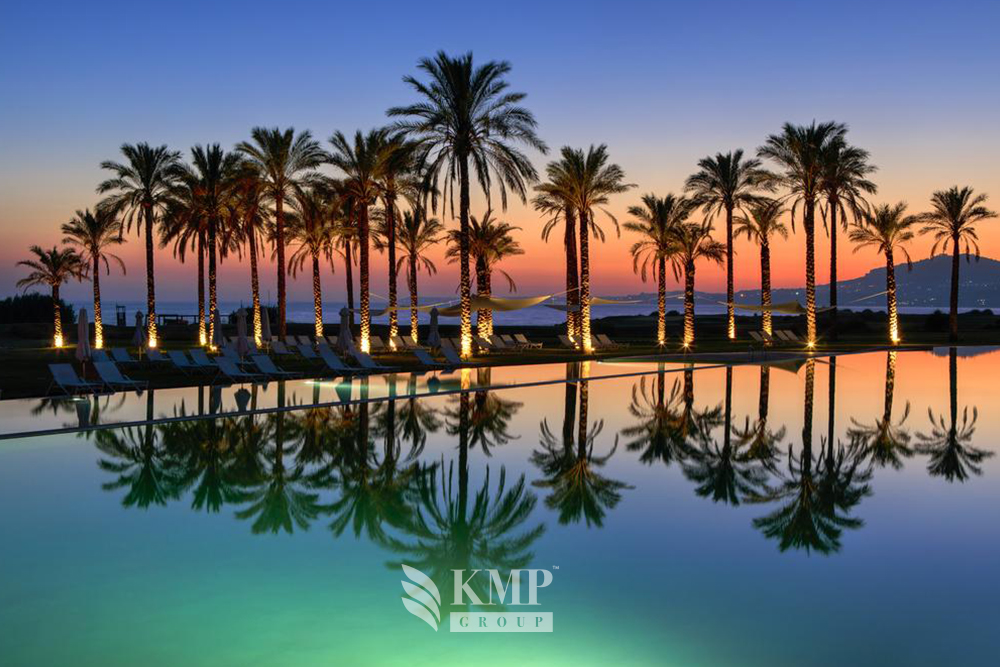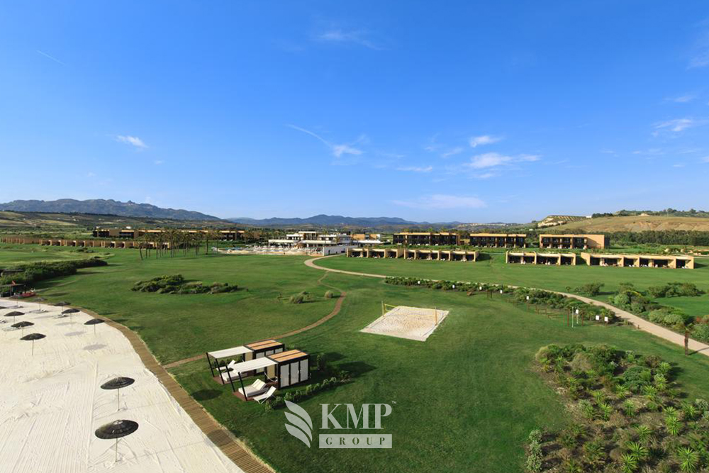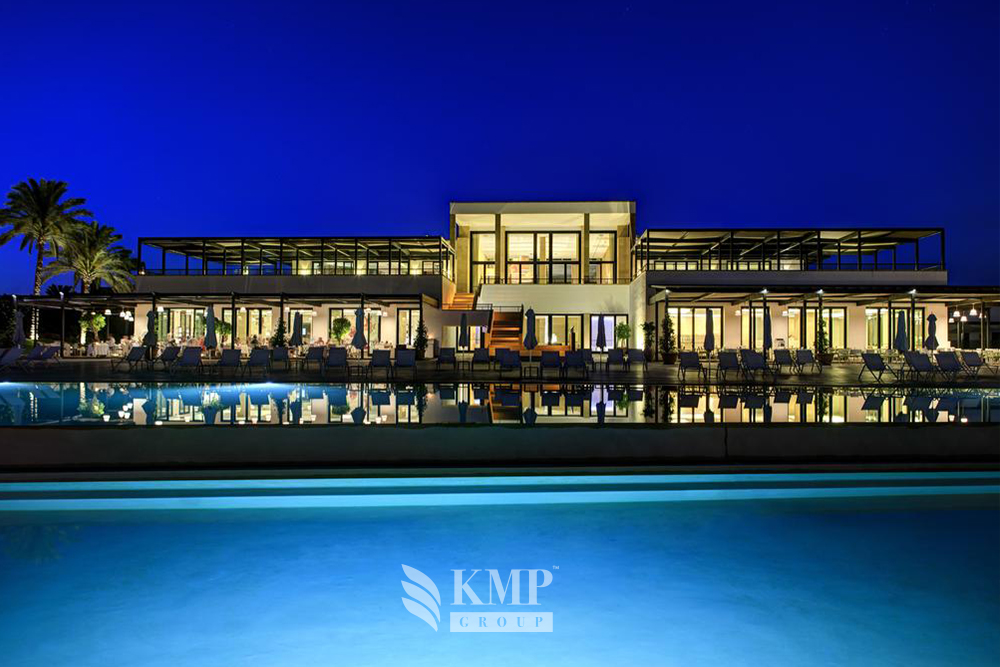 Villa Mimosa (260 кв. м). Терраса с открытым персональным бассейном и обеденной зоной на открытом воздухе, гостиная с обеденной зоной, мини-кухня, 3 спальни (каждая – с гостиной зоной и кроватью king-size), гардеробные зоны, 3 ванные комнаты (каждая – с ванной и душевой кабиной), гостевой туалет. Дополнительно: кофемашина. Вид на море и гольф-поля.