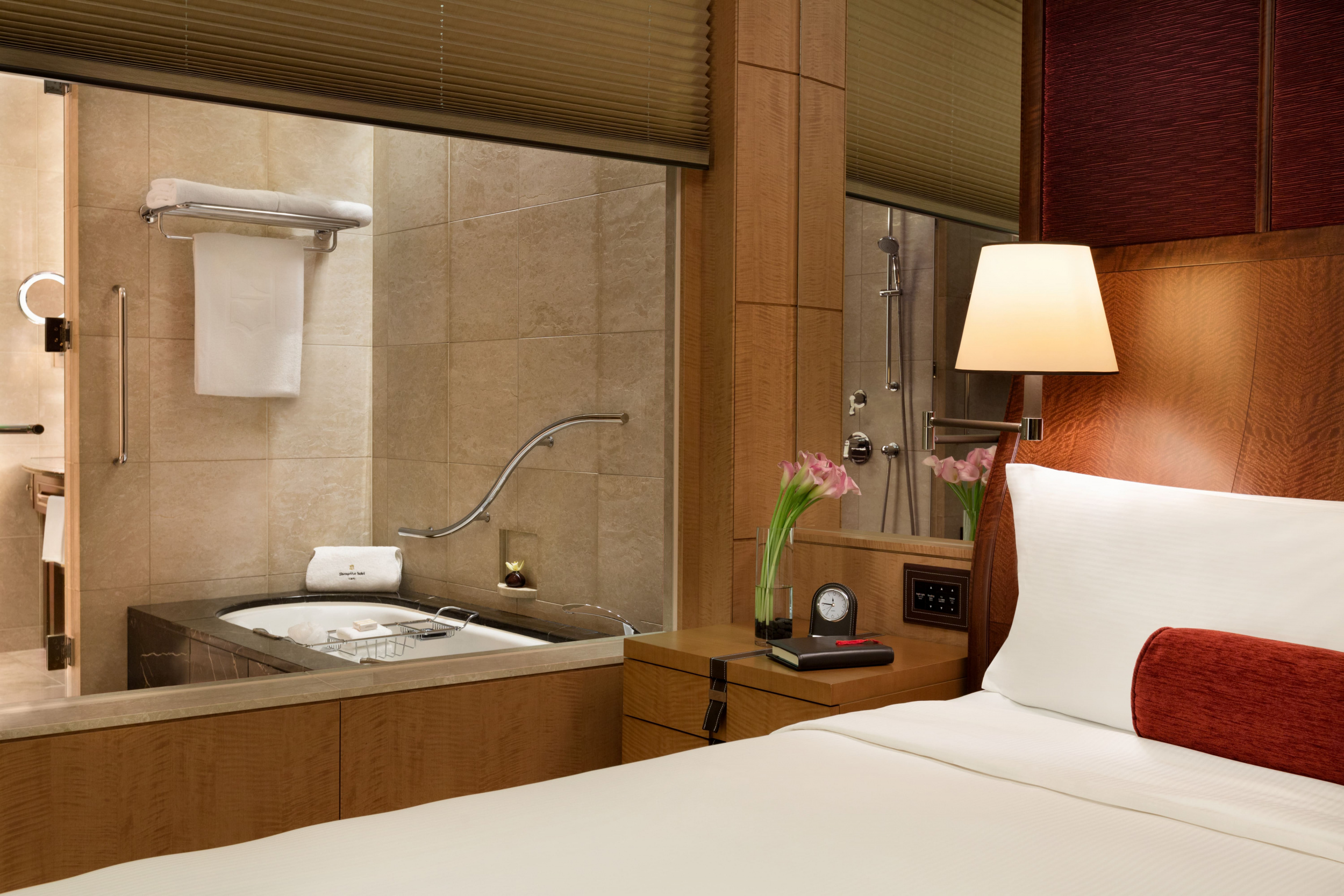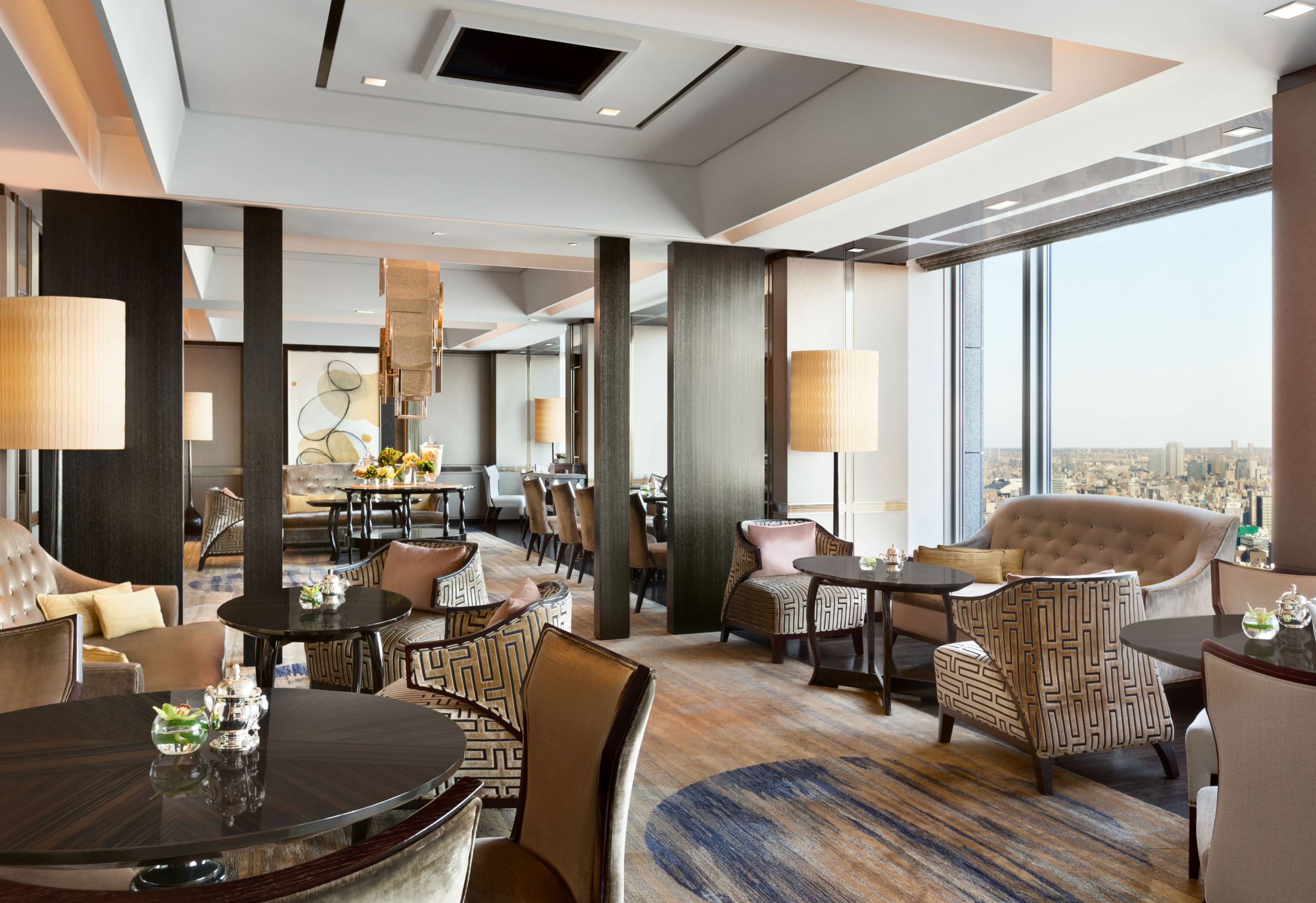 Shangri-La Suite (150 кв. м). Просторная гостиная с обеденной зоной, спальня, ванная комната. Панорамный вид на залив Токио. Гости данных номеров имеют особые привилегии.