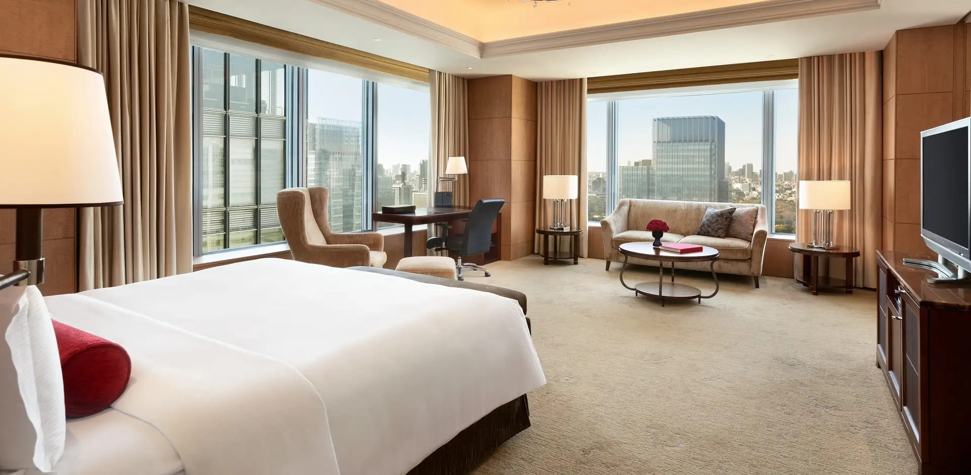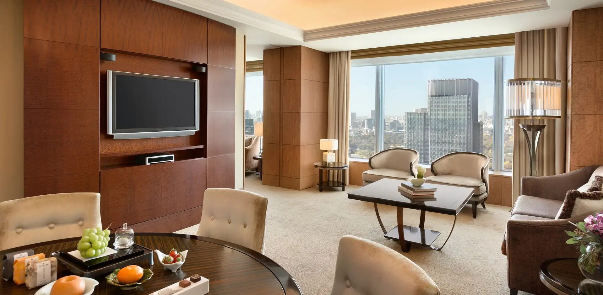 Premier Room (68 кв. м). Уютная гостиная зона, спальня, ванная комната со всеми удобствами. Из окон открывается чудесный вид на Токио.