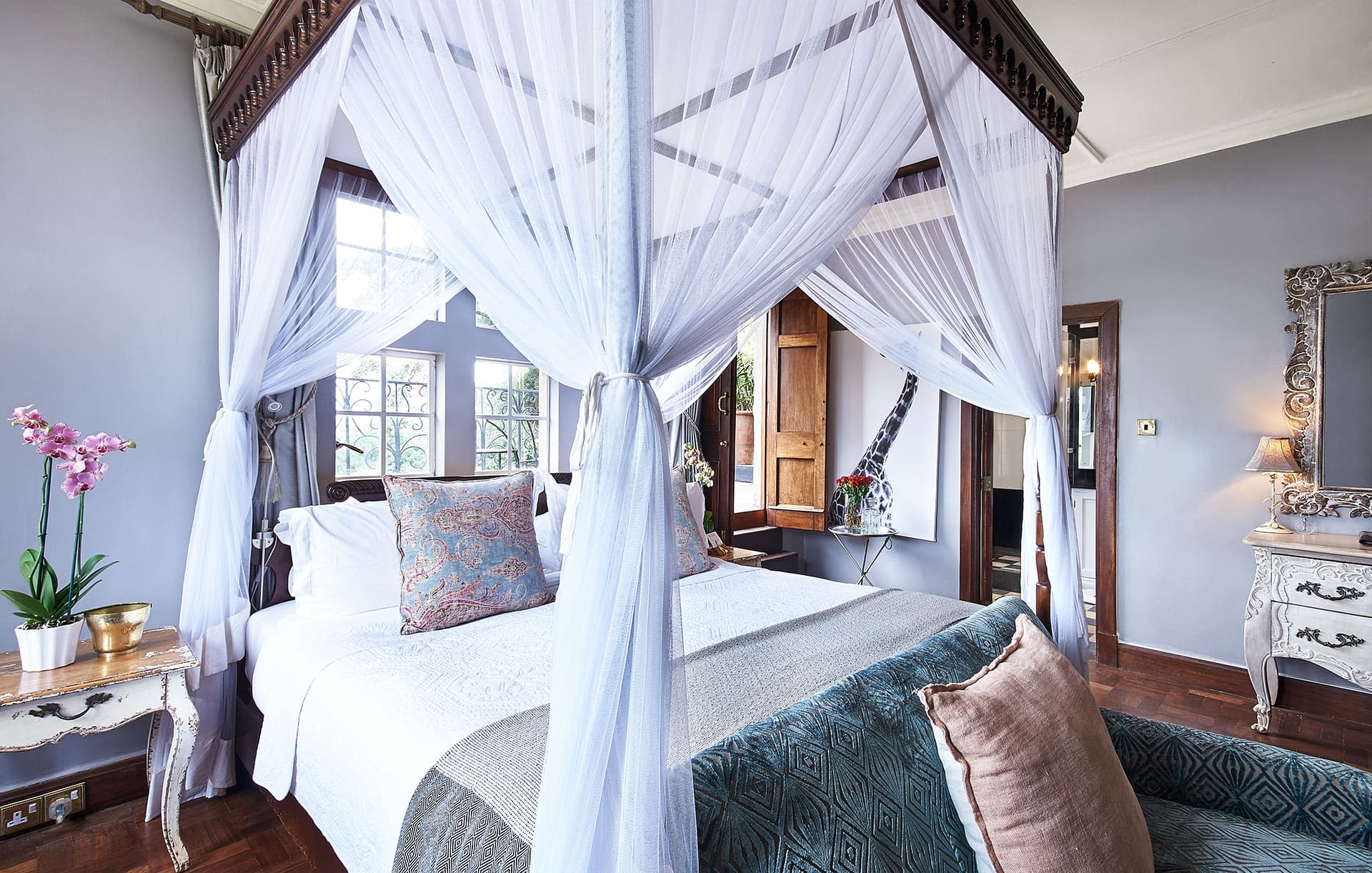 Giraffe Manor – это стадо жирафов Ротшильда, которые обитают в этих местах. Каждое утро грациозные создания прогуливаются вокруг поместья и с любопытством заглядывают в окна к постояльцам. В отеле 10 номеров, обеденная зала, массаж в номерах, Wi-Fi доступ в Интернет.