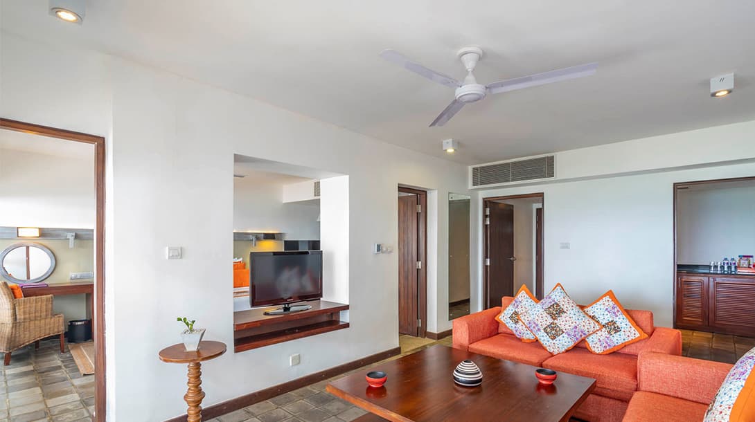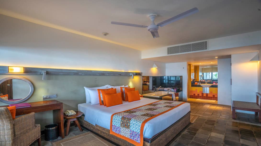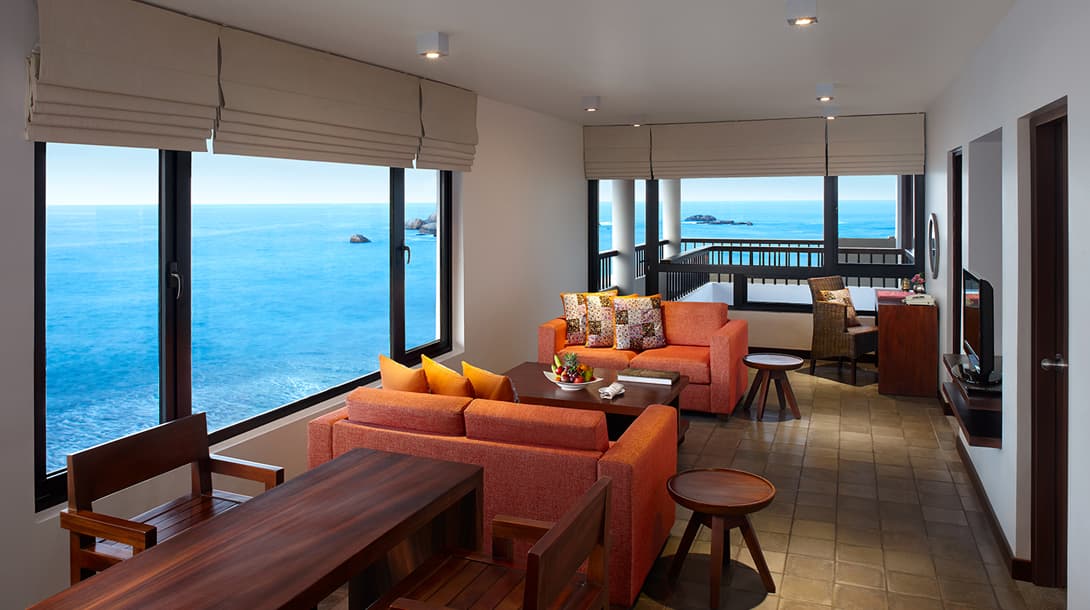 Corner Suite (78 кв. м). Угловые номера, идентичные номерам Middle Suite, но более просторные, имеют ванную комнату с душем и дополнительно – джакузи на балконе.