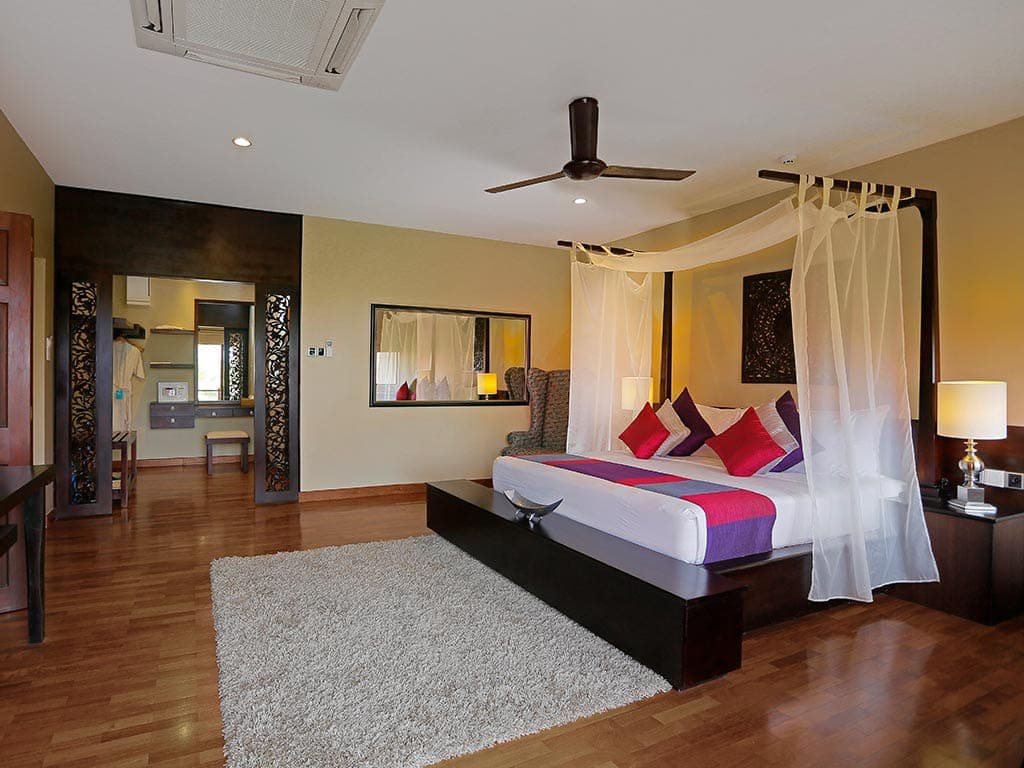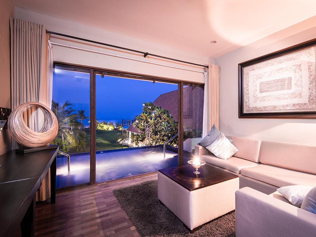 Beach villa. Двухэтажная вилла. На первом этаже: терраса с открытым персональным бассейном, гостиная с обеденной зоной (стол на 6 персон). На втором этаже: 2 спальни (каждая – с кроватью king-size), 2 ванные комнаты (каждая – с ванной). Вид на океан. Услуги персонального камердинера.