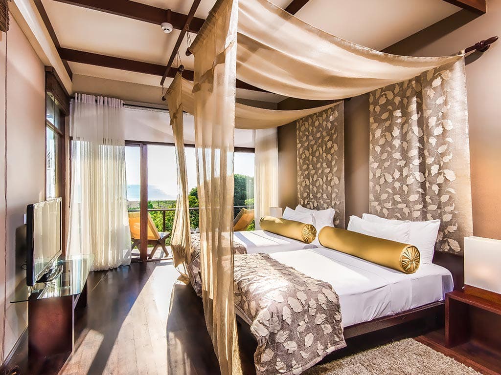 Ocean view studio. Балкон, спальня с кроватью king-size, ванная комната с душем с функцией «тропический дождь». Расположены на верхних этажах. Вид на океан.