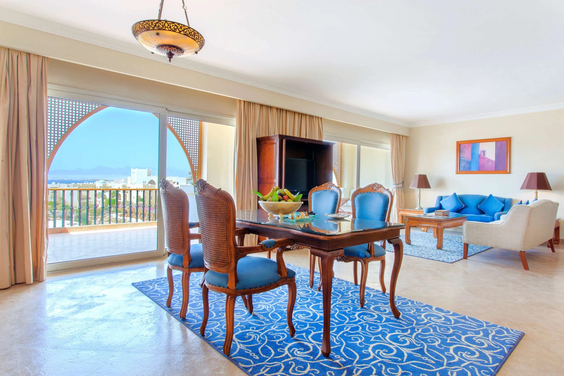 325 номеров, включая 34 категории suite, 3 ресторана, 2 бара, пляж, 2 открытых бассейна (один – подогреваемый в зимний сезон), джакузи на открытом воздухе, центр талассотерапии, салон красоты, тренажерный зал, йога, аэробика, аквааэробика, бизнес-центр, Wi-Fi доступ в Интернет, детский клуб, услуги няни, услуги консьержа, парковка. В отеле есть великолепный центр талассотерапии, где вам предложат широчайший выбор оздоровительных программ. Особого внимания заслуживает алготерапия — обертывание морскими водорослями, которое способствует выведению токсинов и похудению. Пока взрослые наслаждаются SPA-процедурами, юных гостей ожидает детский клуб с двумя подогреваемыми бассейнами и большим выбором развлечений.