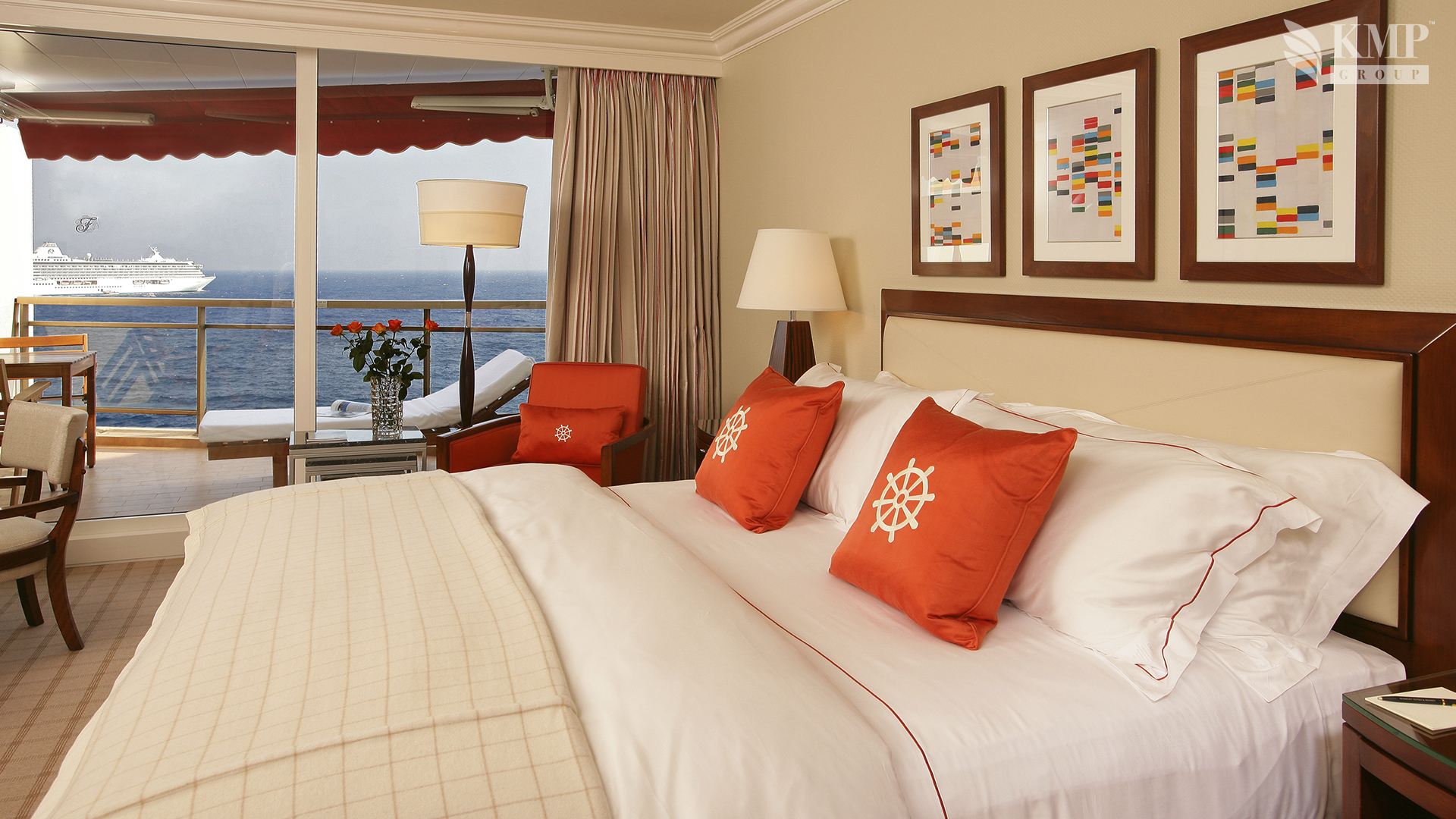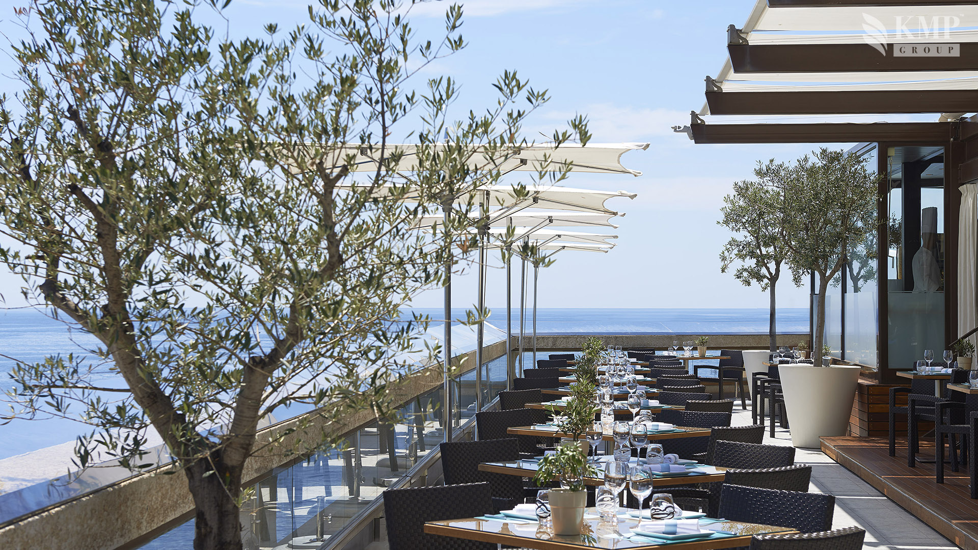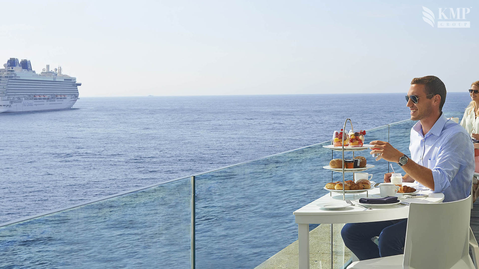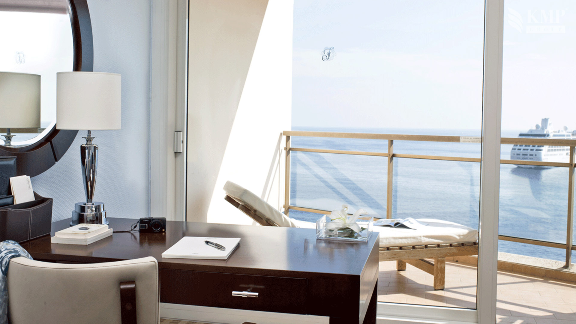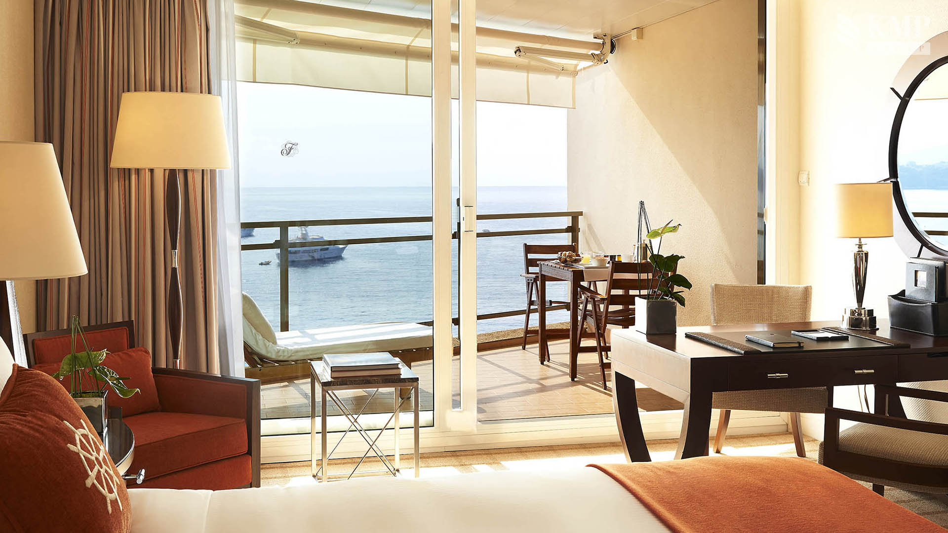 Grand Prix suite (85 кв. м). 3 террасы, гостиная, спальня с кроватью king-size или двумя отдельными кроватями, ванная комната с ванной и душем. Вид на море и итальянское побережье.