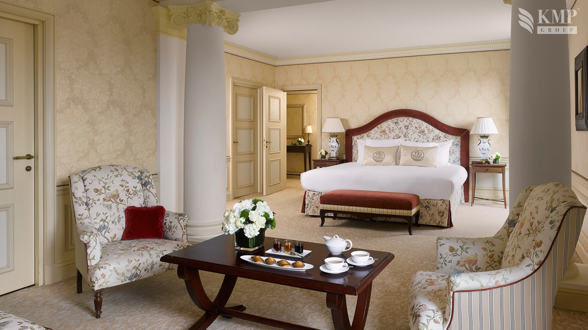 Deluxe suite. Гостиная, кабинет, спальня, гардеробная, ванная комната с ванной и гидромассажной душевой кабиной. Расположены на верхних этажах. Вид на море или город.