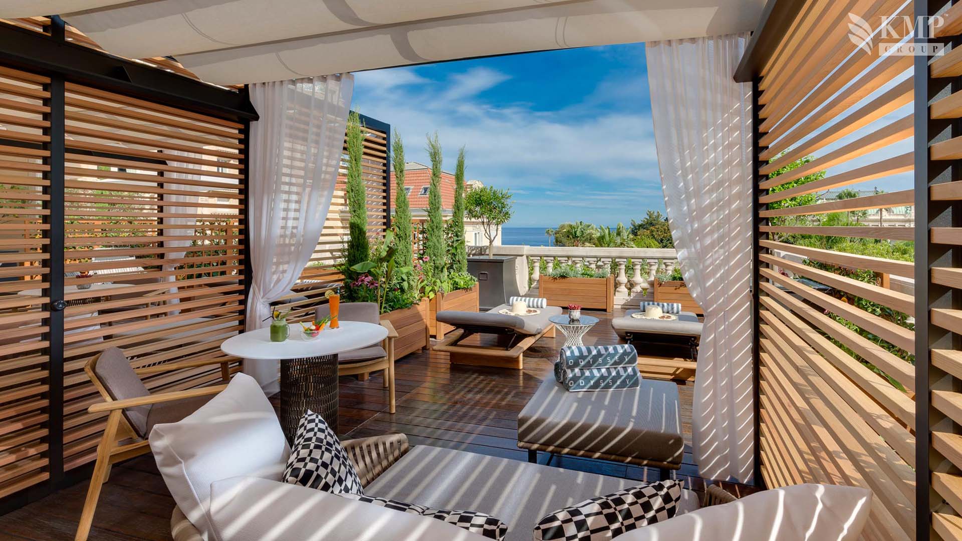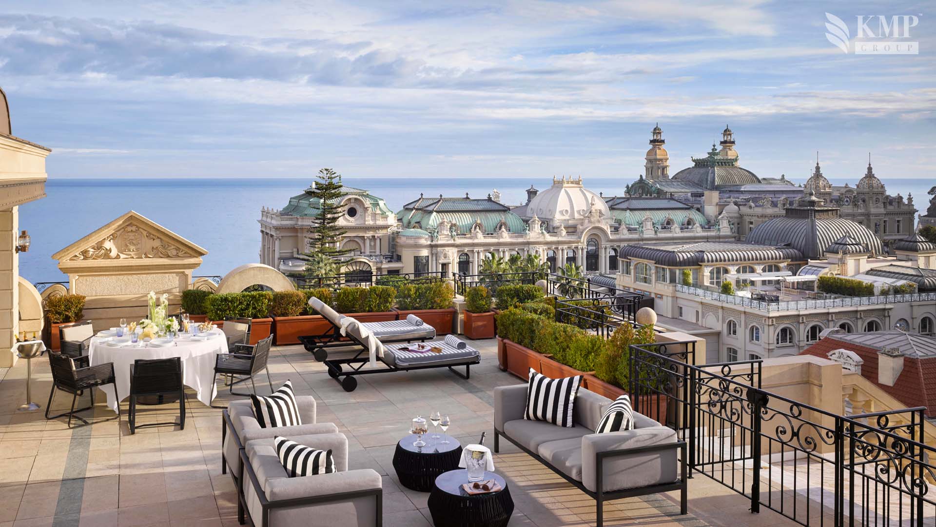 Suite Carre d`Or 1-bedroom (130 кв. м). Терраса (110 кв. м), прихожая, гостиная с обеденной зоной (стол на 4 персоны), спальня, гардеробная, ванная комната с ванной и душевой кабиной, гостевой туалет. Расположены на верхнем этаже. Вид на море, сады и город.