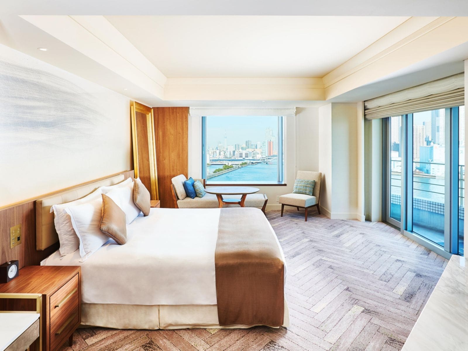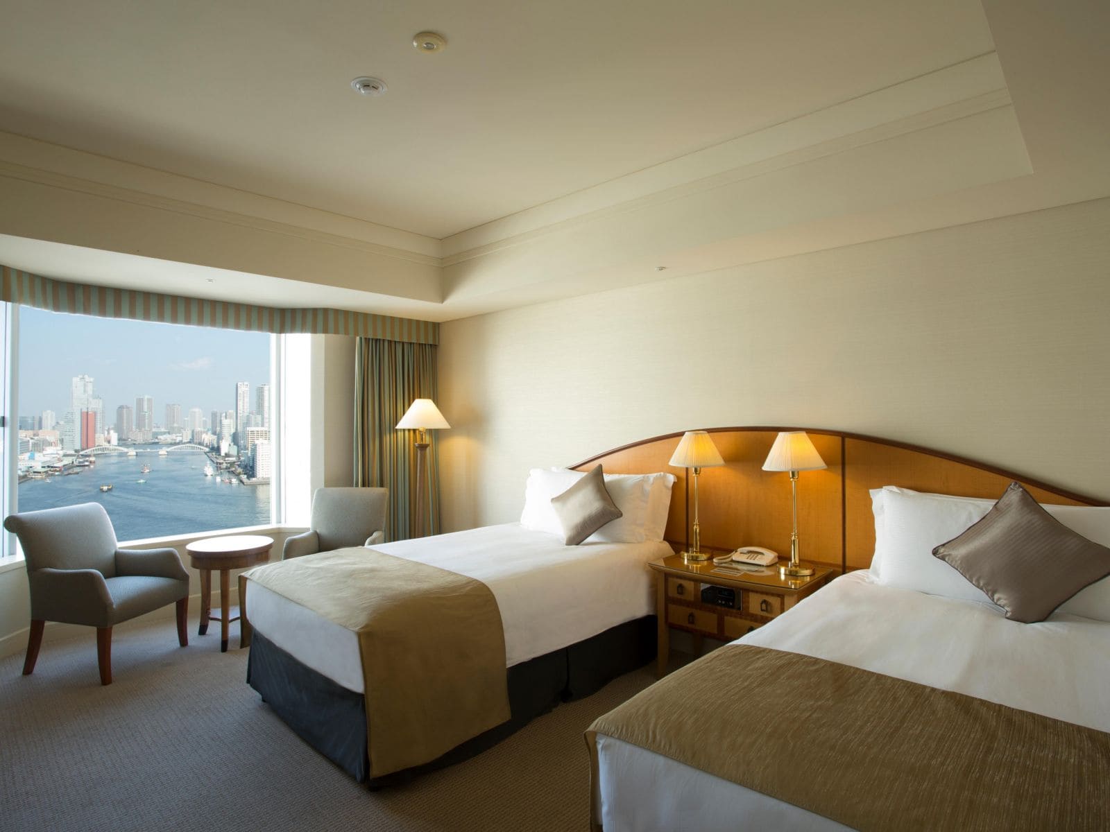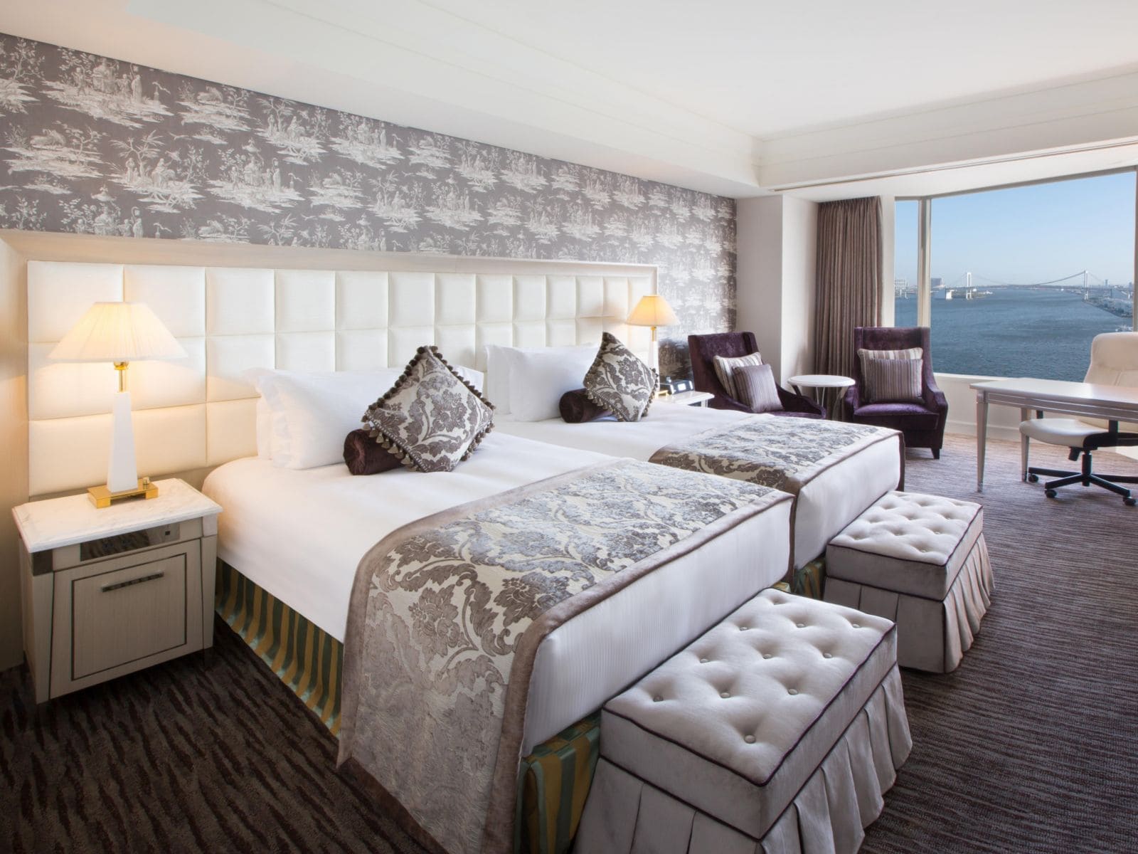 Superior Bay View Room (35-41 кв. м). Мягкая зона для отдыха, спальня с большой двуспальной кроватью или двумя отдельными кроватями, ванная комната. Из окон открывается вид на Токийский залив.