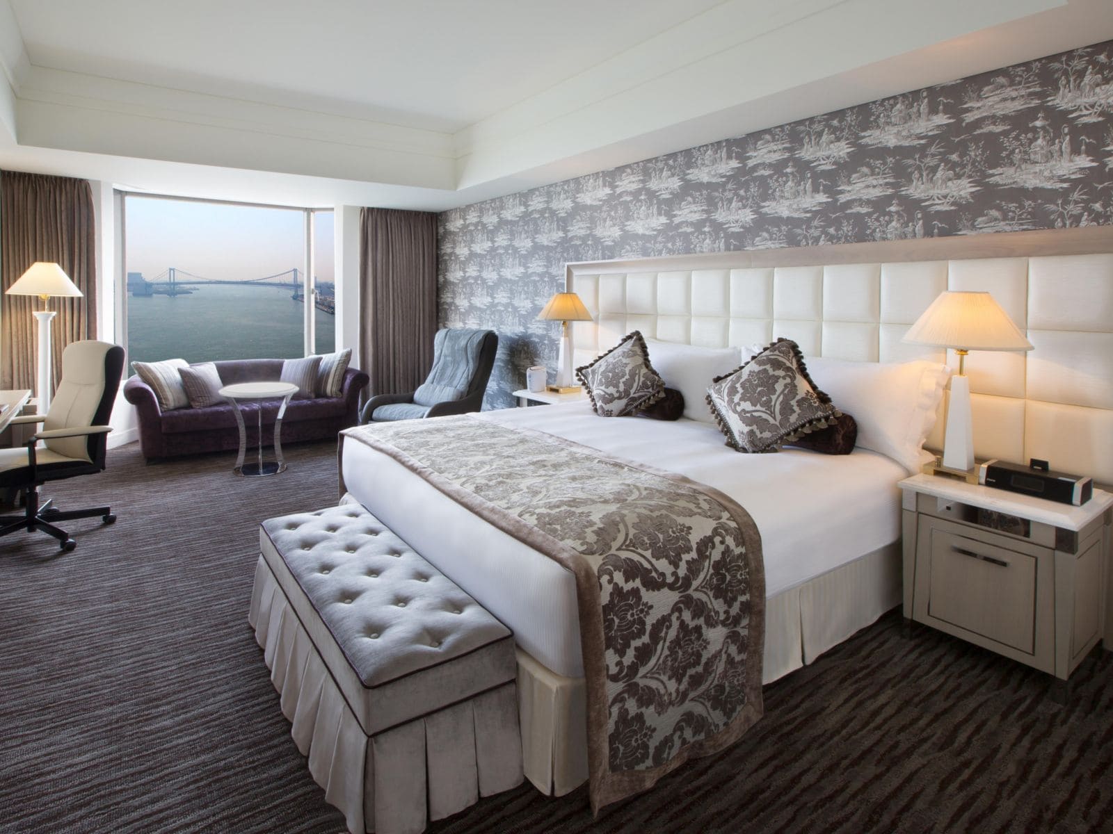 Paris Maison Suite (69 кв. м). Номер оформлен в духе классического дома в Париже. Здесь есть изысканная гостиная зона с камином, столовая зона с обеденным столом, спальня с двумя кроватями, ванная комната с отдельно стоящей ванной и душевой. Из окон открывается вид на Токийский залив.