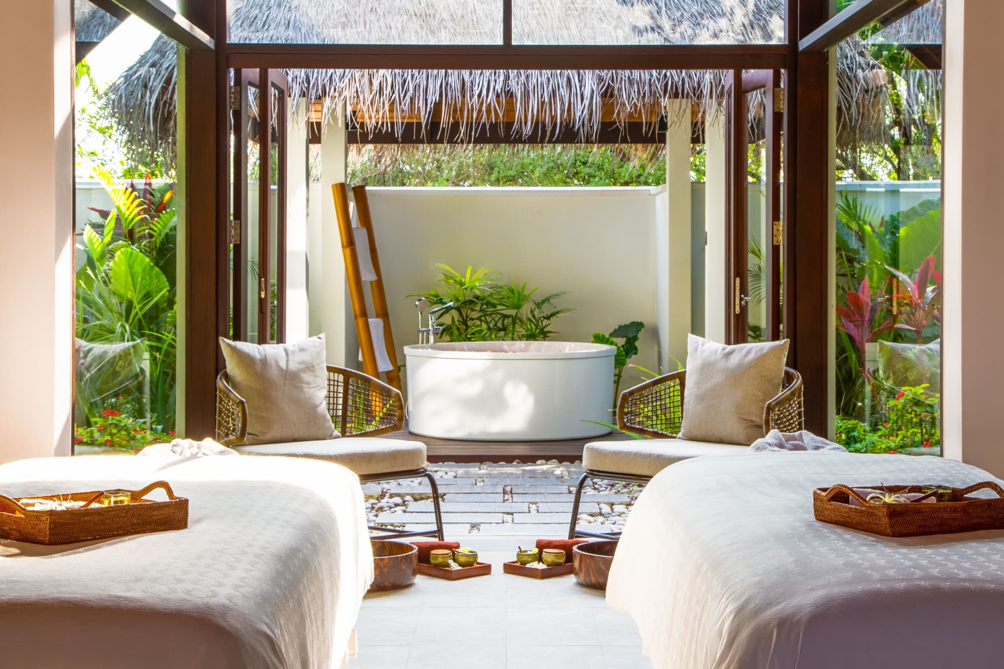 На территории работает бесплатный Wi-Fi. Номера отеля оформлены в традиционном мальдивском стиле и обставлены современной мебелью. Из их окон открывается вид на сад, пляж или море. Для комфортного отдыха гостей все номера оборудованы кондиционером. В числе удобств также мини-бар и телевизор с плоским экраном, транслирующий китайские каналы. Ванная комната оснащена ванной или душем и укомплектована тапочками и набором для ухода за зубами. Кроме того, гостям предоставляется китайский чай и услуги круглосуточной доставки еды и напитков в номер.