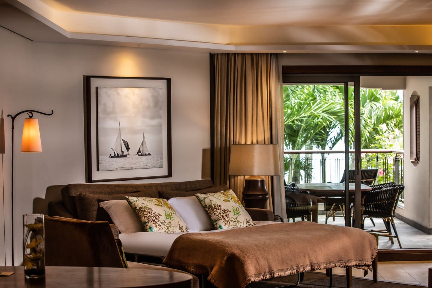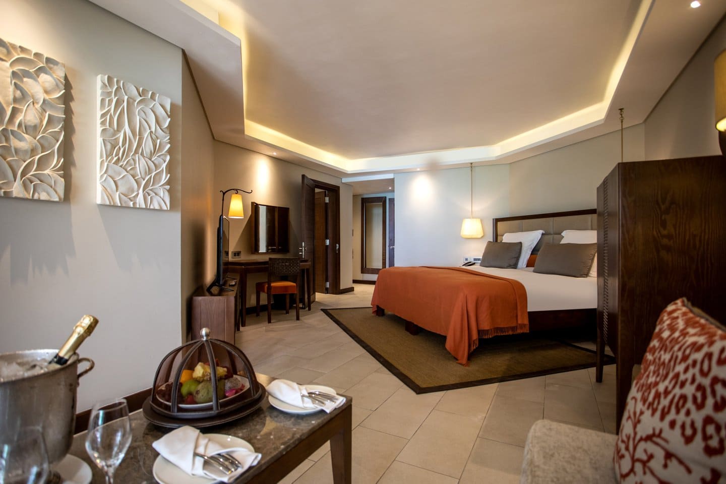 К услугам гостей частный пляж с белым песком, 3 бассейна с подогревом, спортивный центр, спа-центр и снаряжение для водных и других видов спорта. Все люксы отеля Beachcomber Royal Palm декорированы прекрасными тканями и отделаны деревом и мрамором. Из отдельного патио открывается вид на тропический сад и Гран-Бэ. В собственной ванной комнате установлены отдельные ванна и душ, а также двойная раковина. Подключен бесплатный Wi-Fi. На пляже работает ресторан Le Bar Plage. Из ресторанов La Brezza и La Goelette открывается вид на залив. Во всех ресторанах обслуживание производится по меню. По вечерам в баре звучит живая музыка. Гости отеля Royal Palm могут заняться различными видами активного отдыха, такими как катание на водных лыжах, сноркелинг и туры на лодках с прозрачным дном. В 4 км разбито поле для гольфа Mont Choisy Le Golf на 18 лунок. На территории имеется вертолётная площадка. По запросу предоставляется трансфер на вертолете.