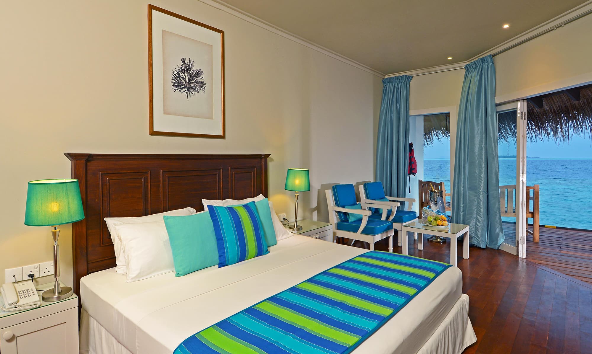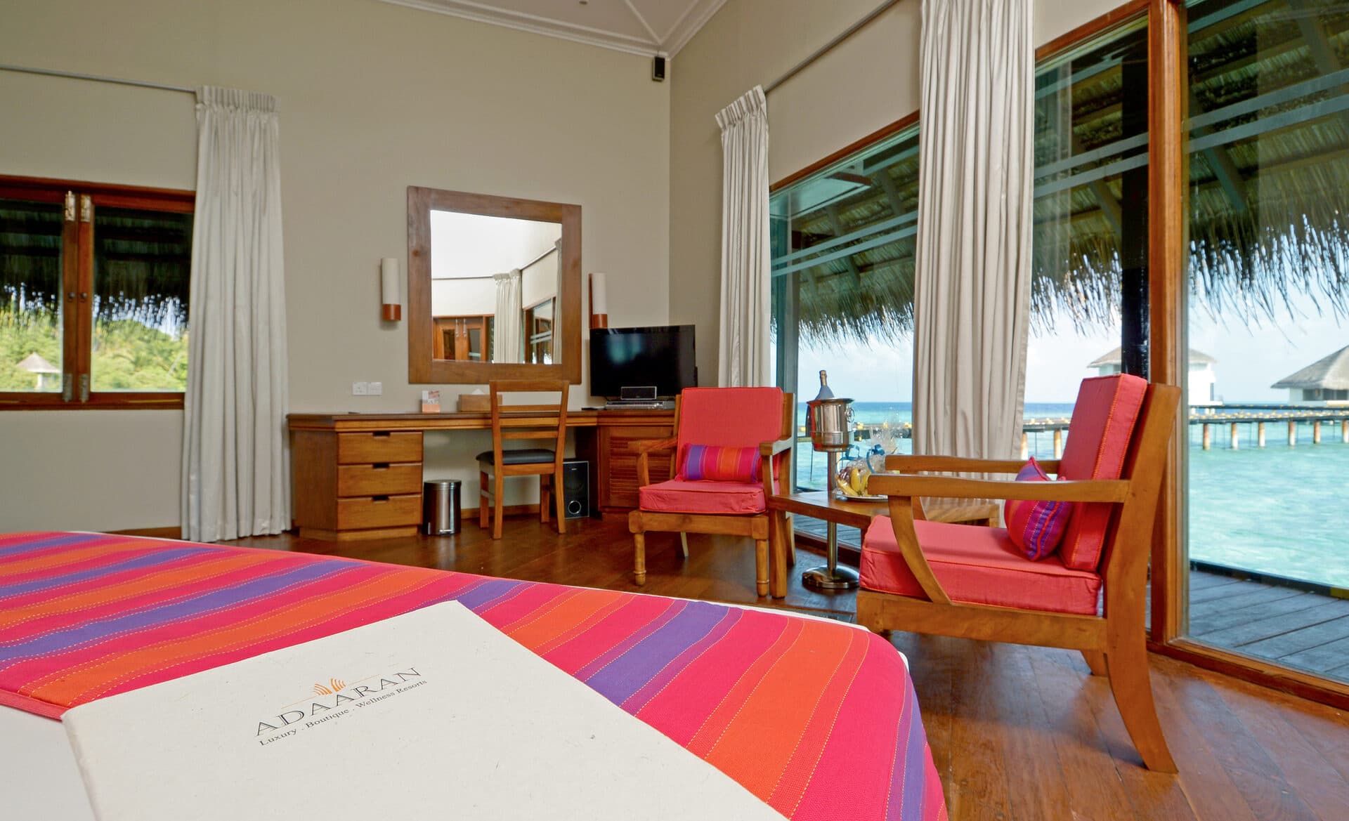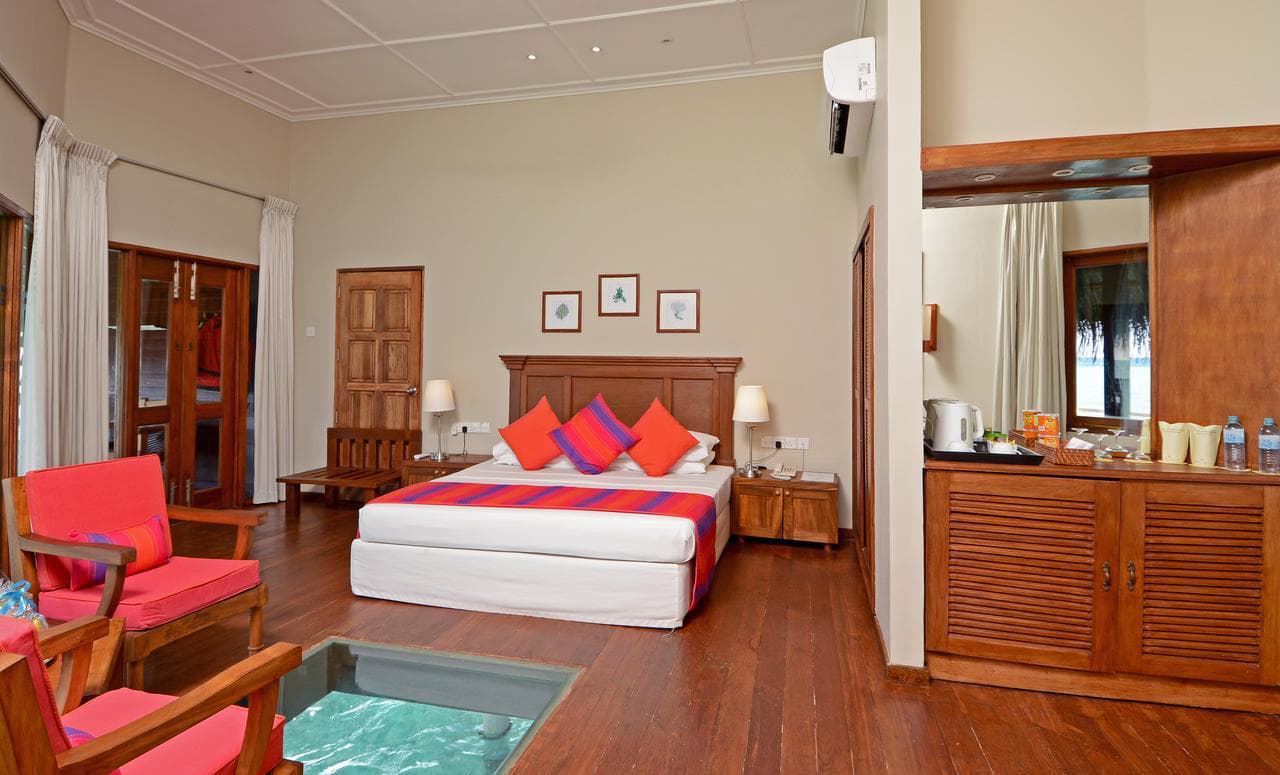Все бунгало отеля Adaaran Rannalhi обставлены классической деревянной мебелью. В числе удобств кондиционер, собственный балкон, гостиная зона, сейф, а также телевизор с плоским экраном и китайскими каналами. Предоставляются тапочки.