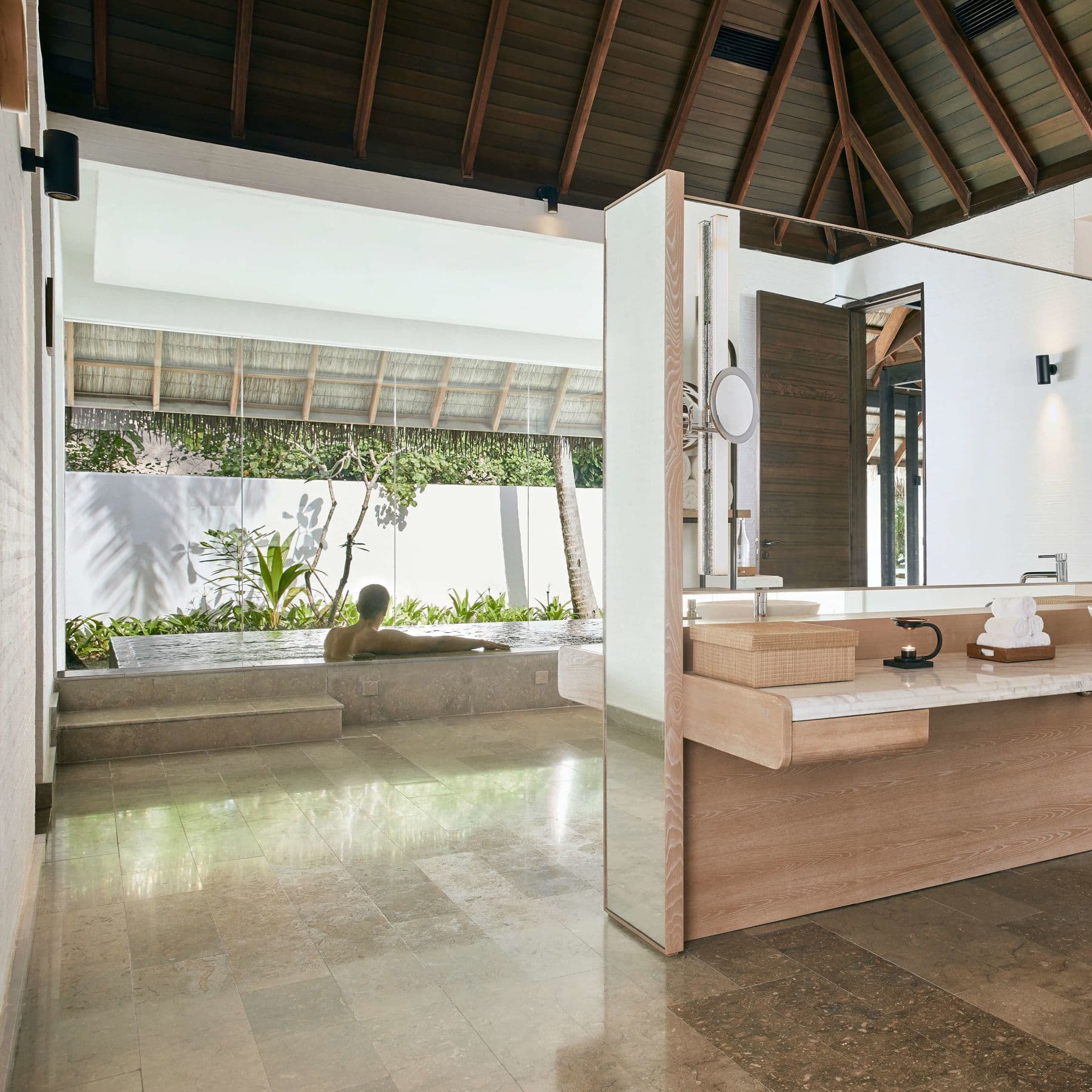 Панорамные окна вилл, ведущие на просторные террасы, стирают грань между помещением и природой. Декор, выполненный в голубых и белых тонах, также воссоздает в помещениях атмосферу моря, неба и белоснежного песка. К услугам гостей изысканно оформленные виллы и расслабляющие спа-процедуры. На всей территории отеля работает бесплатный Wi-Fi.