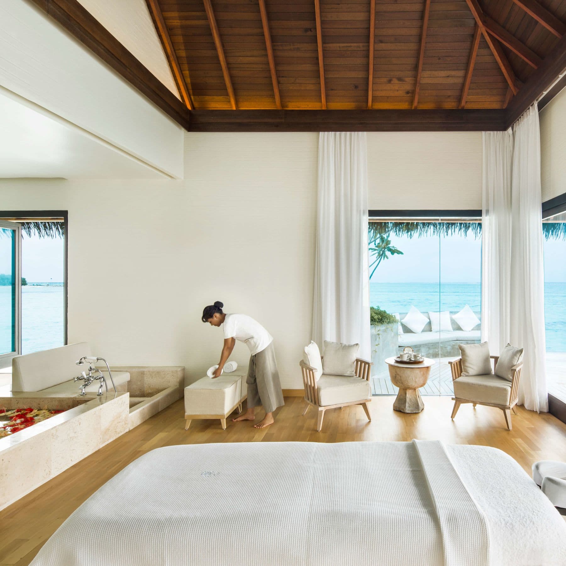 Роскошный курортный отель Maalifushi by COMO с панорамным видом на Индийский океан находится на острове Маалифуши. Здесь есть все, что нужно для роскошного отдыха. Элегантные виллы построены из новозеландской сосны с тростниковыми крышами по проекту японского архитектора Koichiro Ikebuchi и расположены на земле или на сваях над водой.