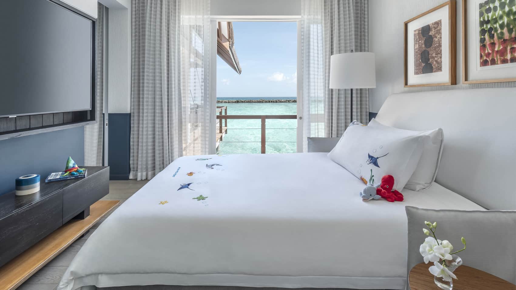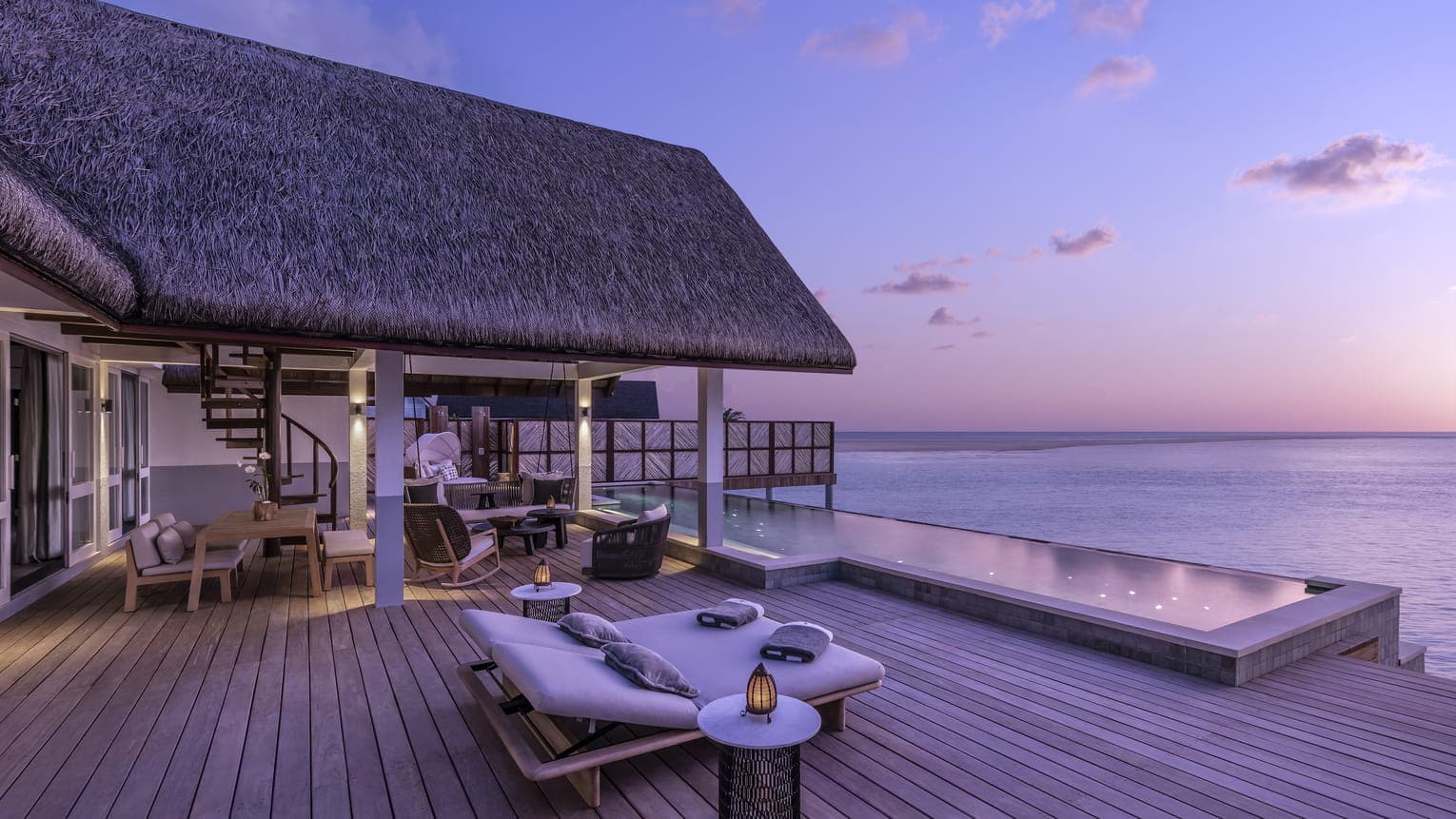 К услугам гостей наземные номера с собственным выходом на пляж, бассейном, душем на открытом воздухе и пышным собственным садом, а также виллы на воде с французскими окнами, откуда открывается панорамный вид на Индийский океан, просторной террасой для загара, душем под открытым небом и гамаками для отдыха над водой.