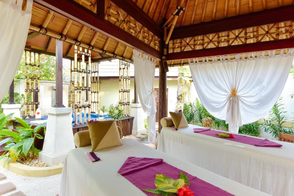 152 виллы, 2 ресторана, кафе, 3 бара, песчаный пляж, открытый бассейн, спа-центр, тренажерный зал, аэробика, спорт и водный спорт, услуги няни, услуги консьержа.