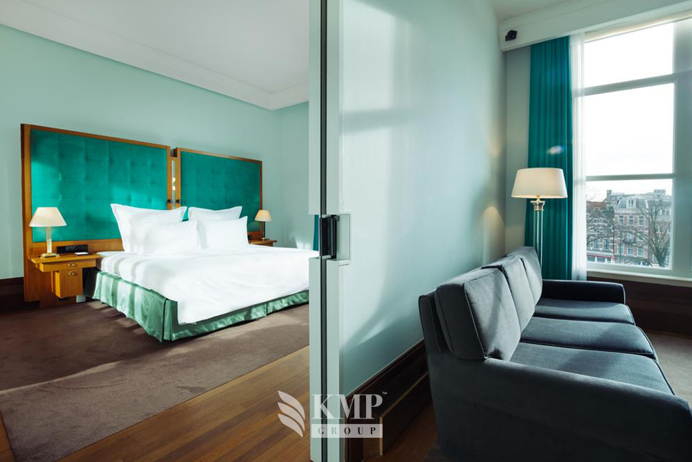 Junior suite (35-50 кв. м). Балкон (в некоторых номерах), спальня с гостиной зоной, ванная комната. Вид на центр города, реку или внутренний двор.