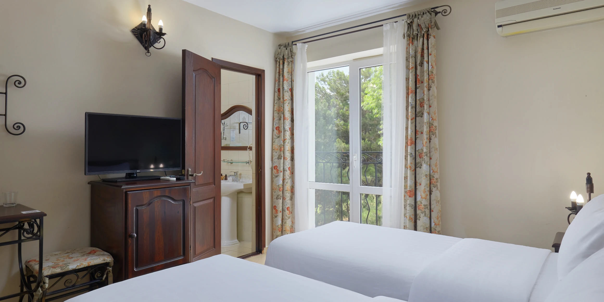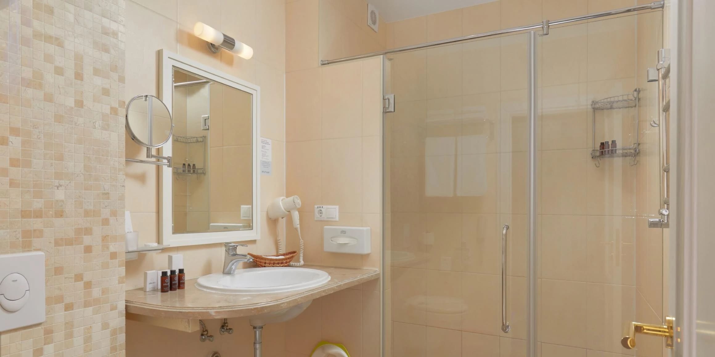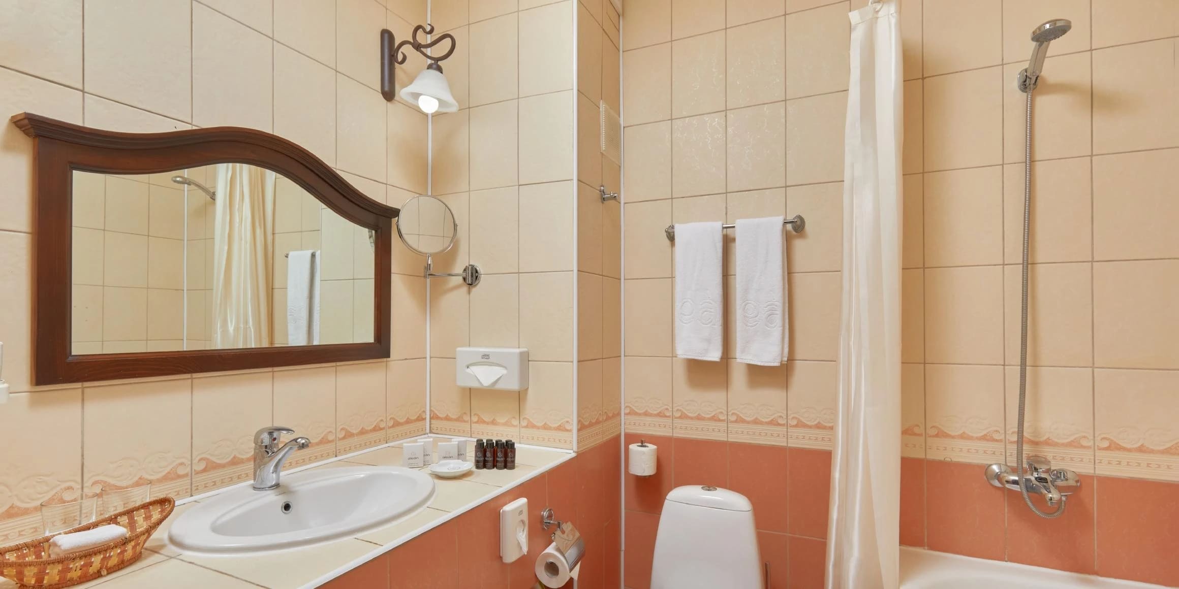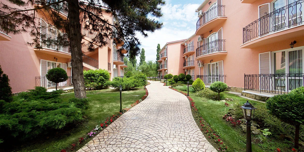 Стандарт 2-местный 1-комнатный 12-20 кв.м (1 доп. место). Балкон или дворик оборудован мебелью и сушилкой. Мебель: две односпальные кровати/одна двуспальная кровать, зеркало, прикроватные тумбочки, пуфик, стулья, туалетный столик, шкаф, мини-холодильник, сплит-система, телевизор, телефон. Санузел: с ванной, таз, тапочки, туалетные принадлежности: фен, халат.